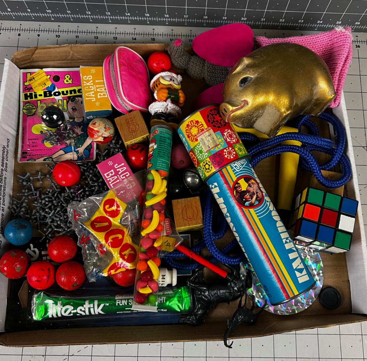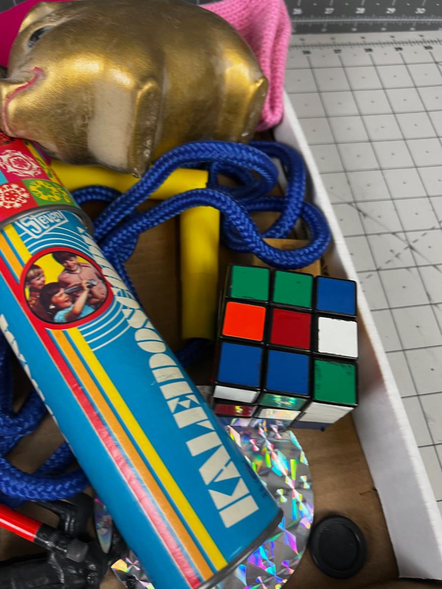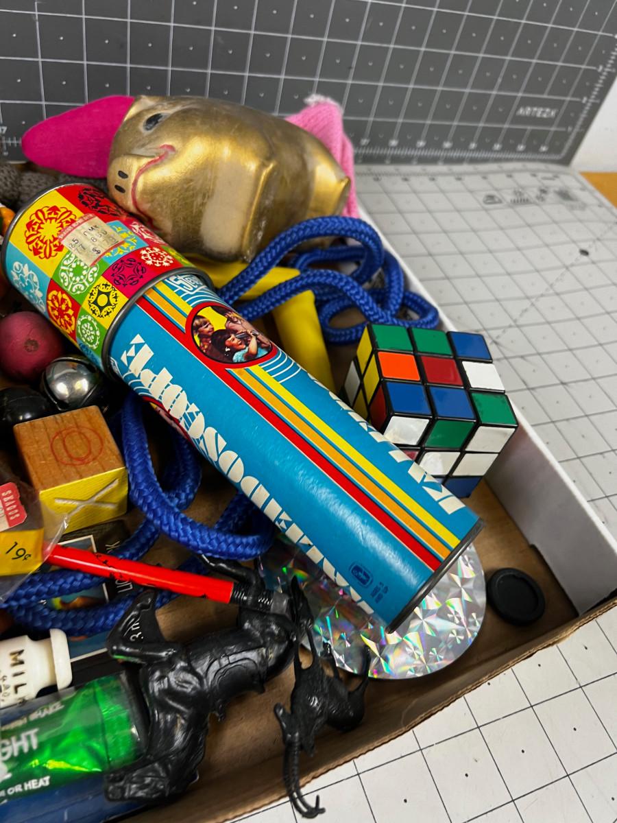 Vintage Toys: Kaleidoscope, a Rubik's Cube, Jacks etc.