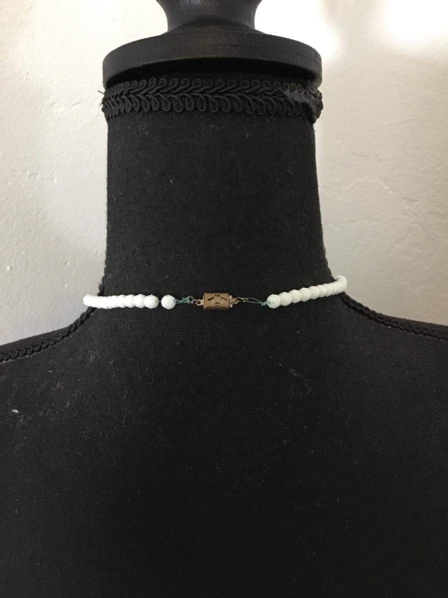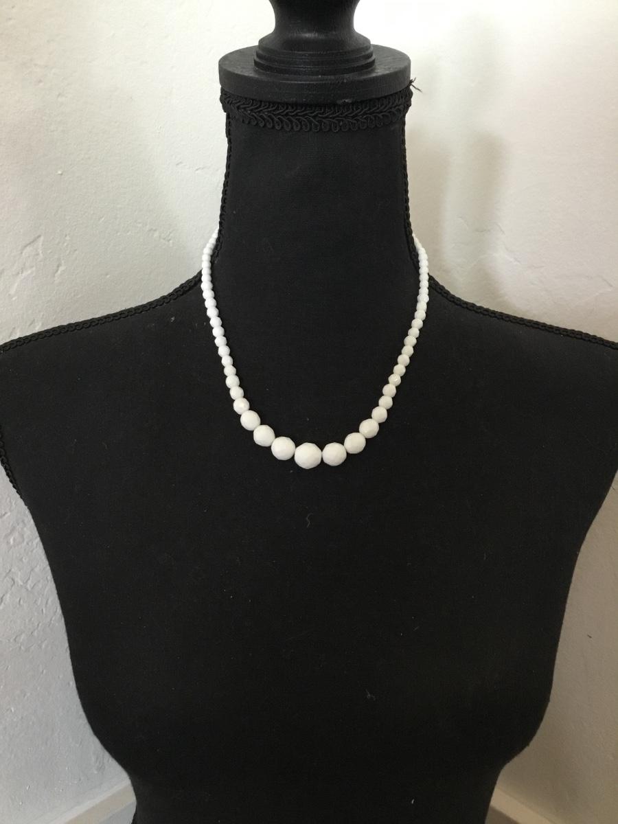 Vintage white faceted milk, glass beaded necklace with vintage clasp