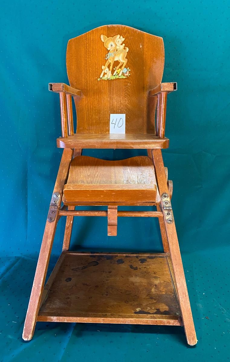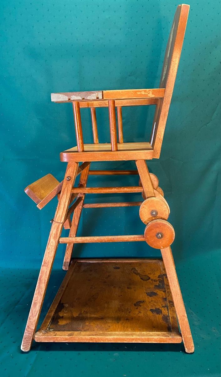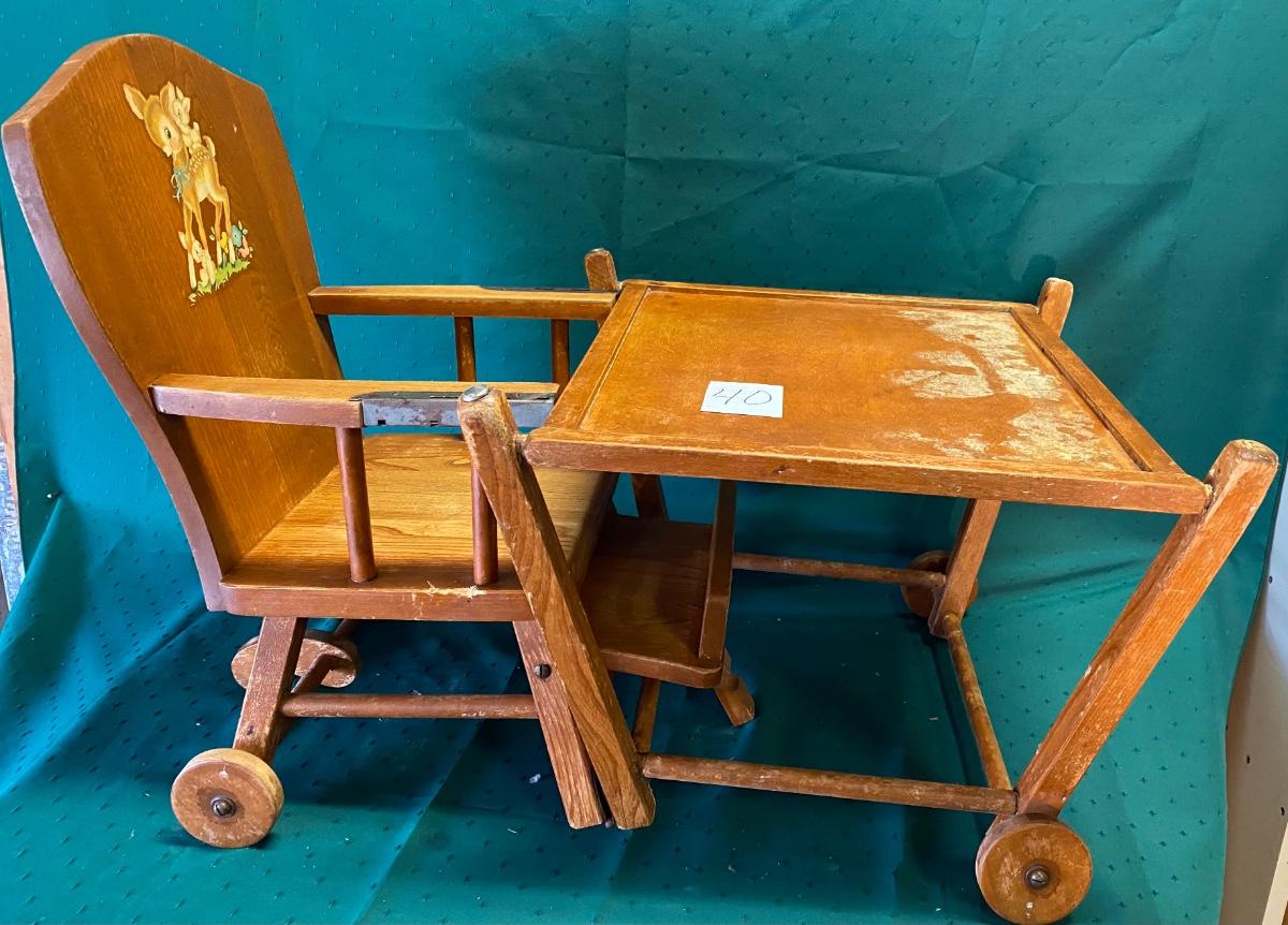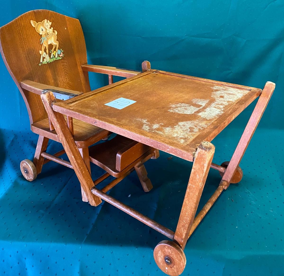 Vintage Wood Folding Highchair/Desk on Wheels