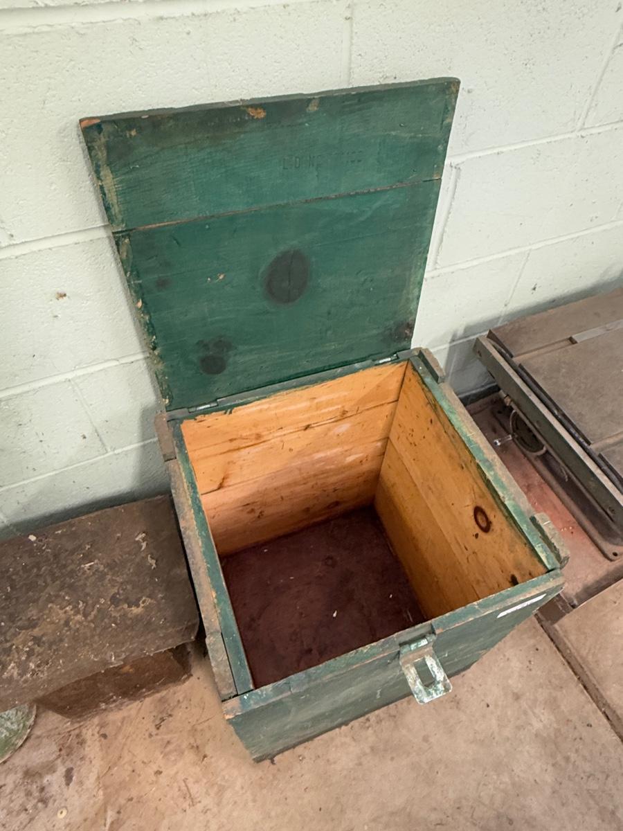 Vintage Wood green painted lift top storage crate/box