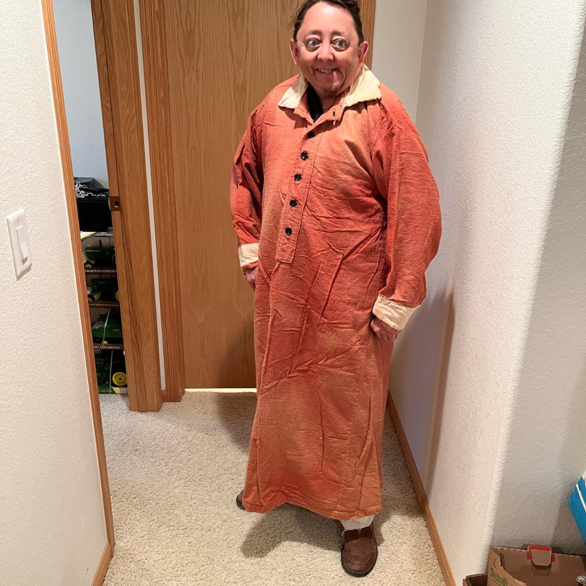 JR had to try it on! Great old piece, it has wear, but overall a great antique piece of clothing.