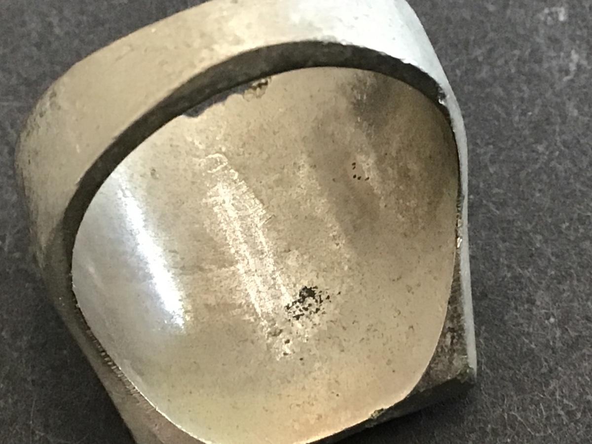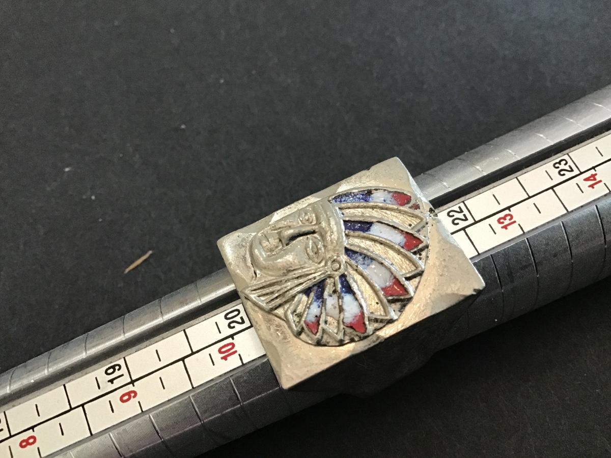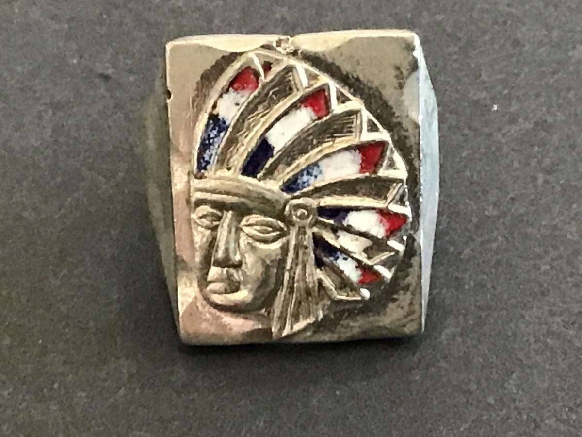 Vintage1950 Mexican Biker Ring w/ Unusual Red, White, & Blue Enameled Native Headdress