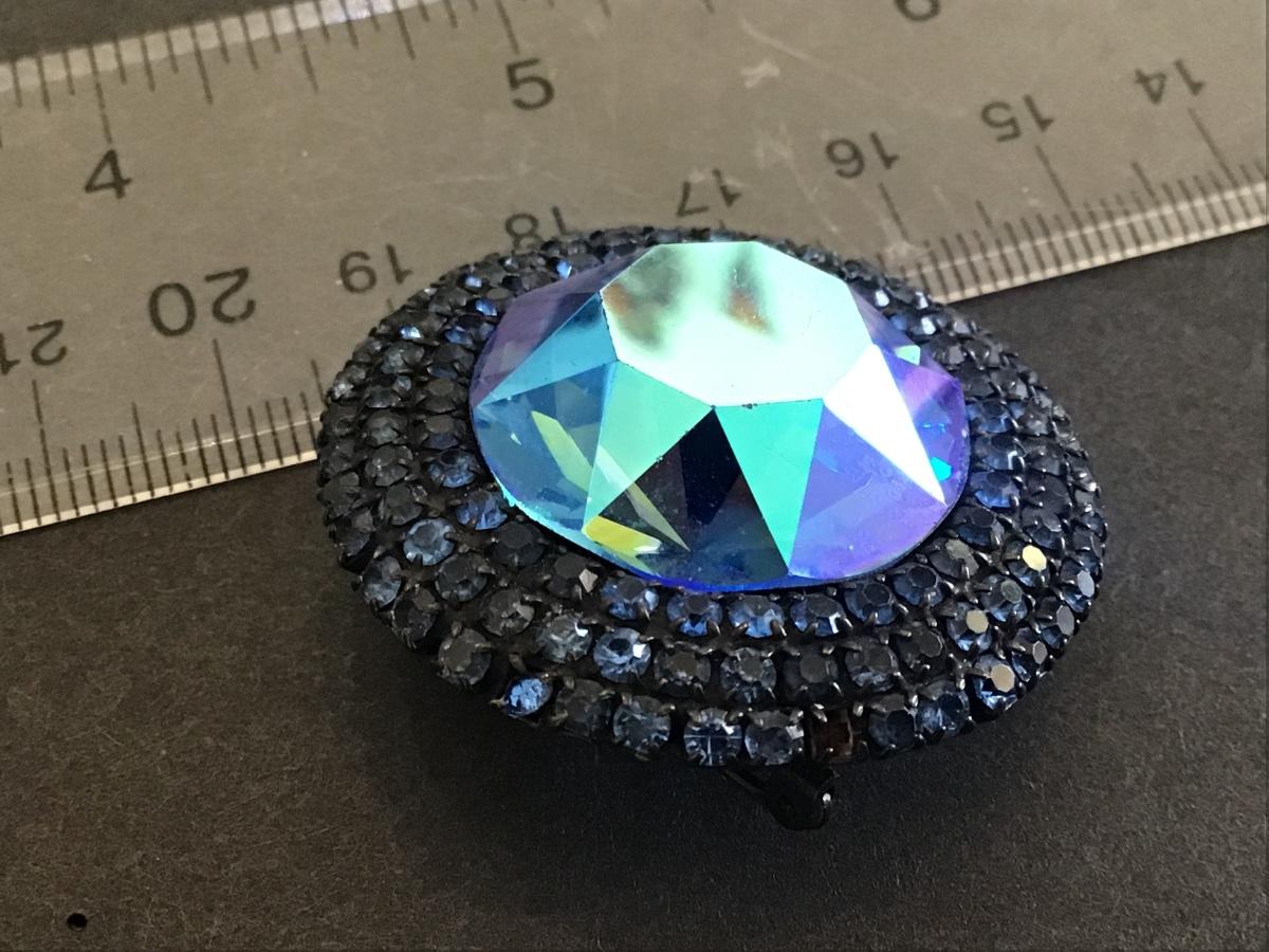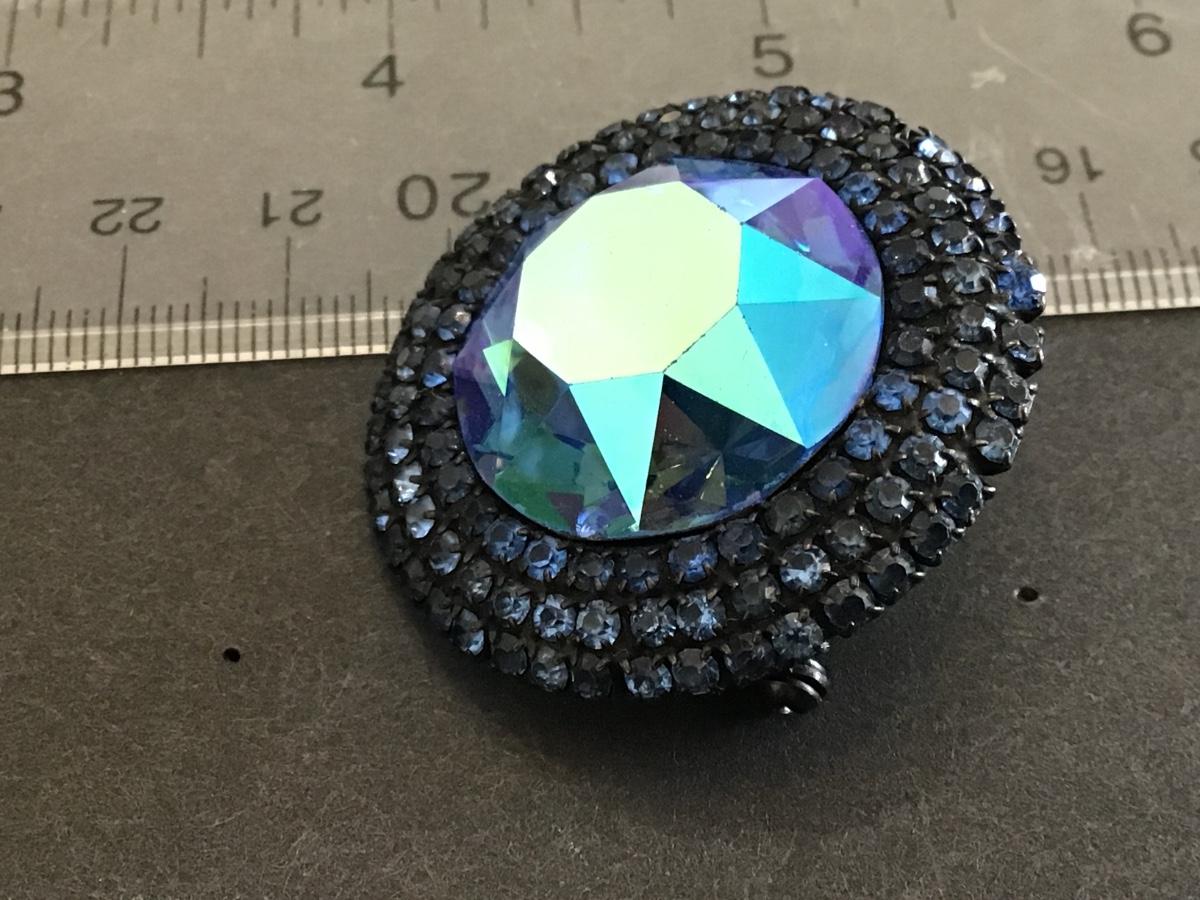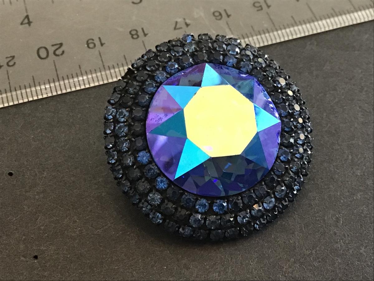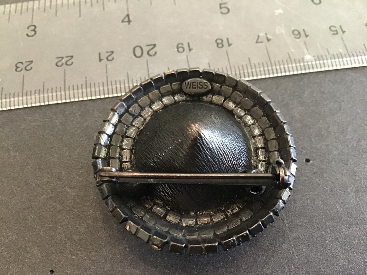 Weiss Signed Blue Green Domed Round Rhinestone Vintage