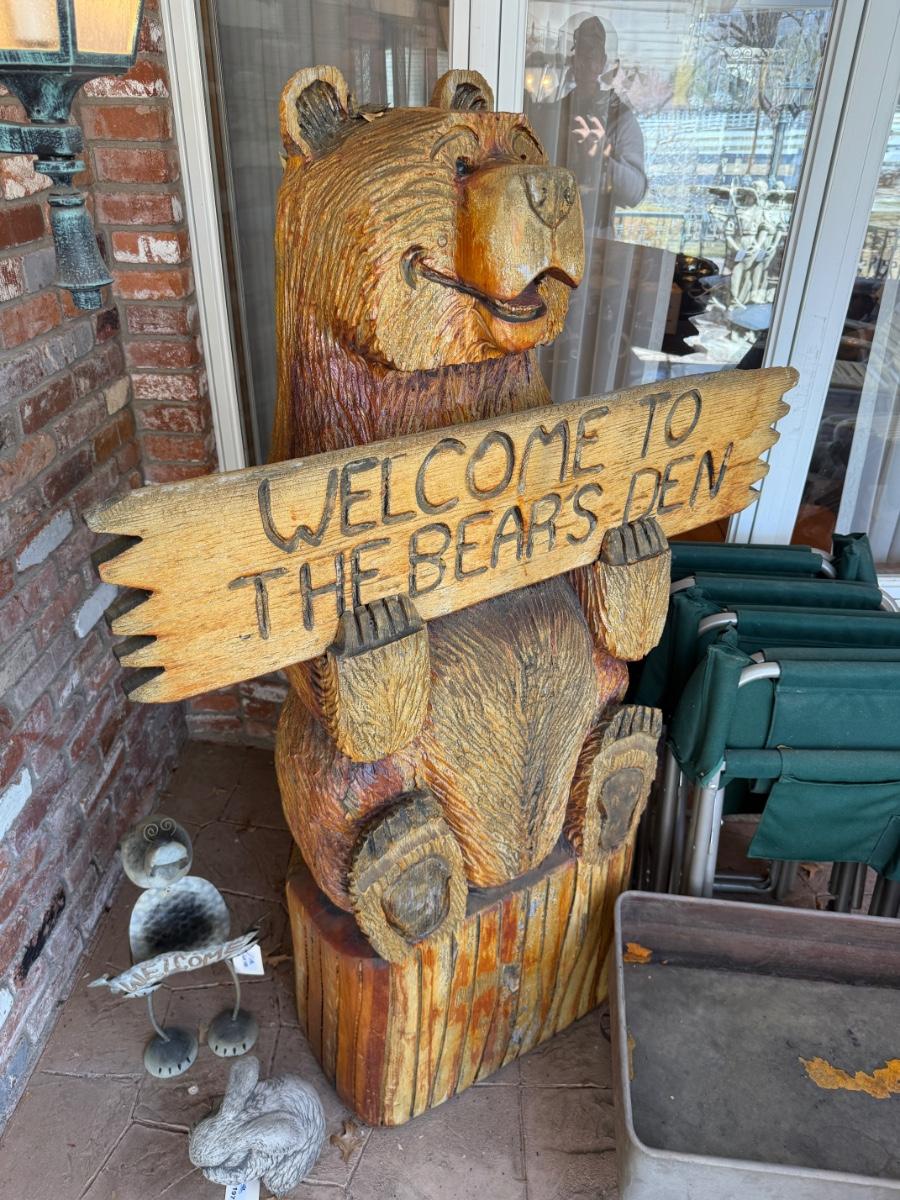 Welcome to the Bear’s Den carved tall Wooden Bear