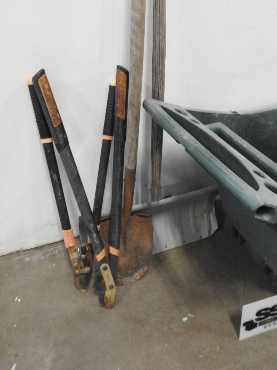 Wheelbarrow w/Snow Shovel, Shovel, 2 Loppers