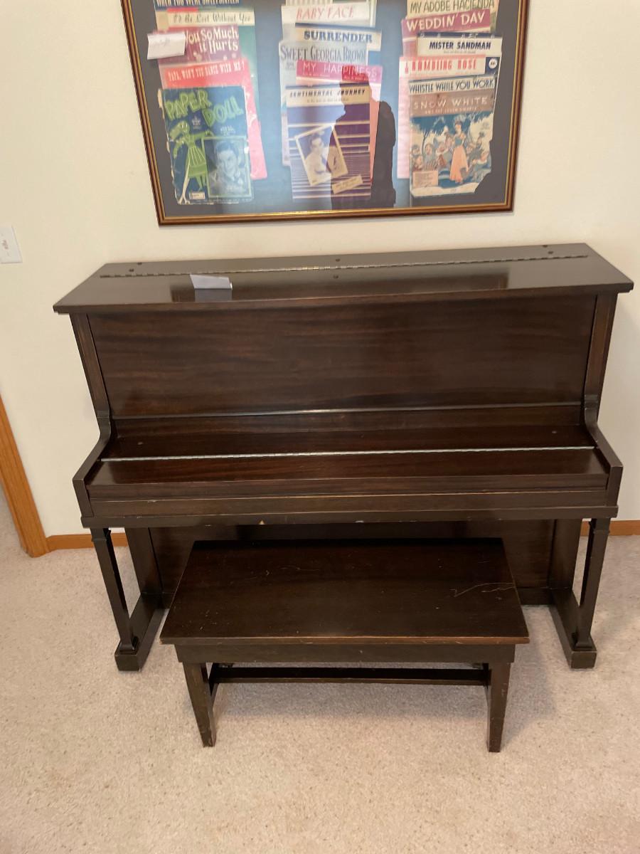 Winter brand cool piano. It is on the main floor with a straight shot to outside! Lighter piano, great condition. Does probably need a tuning. Yes, this was added after the auction started!