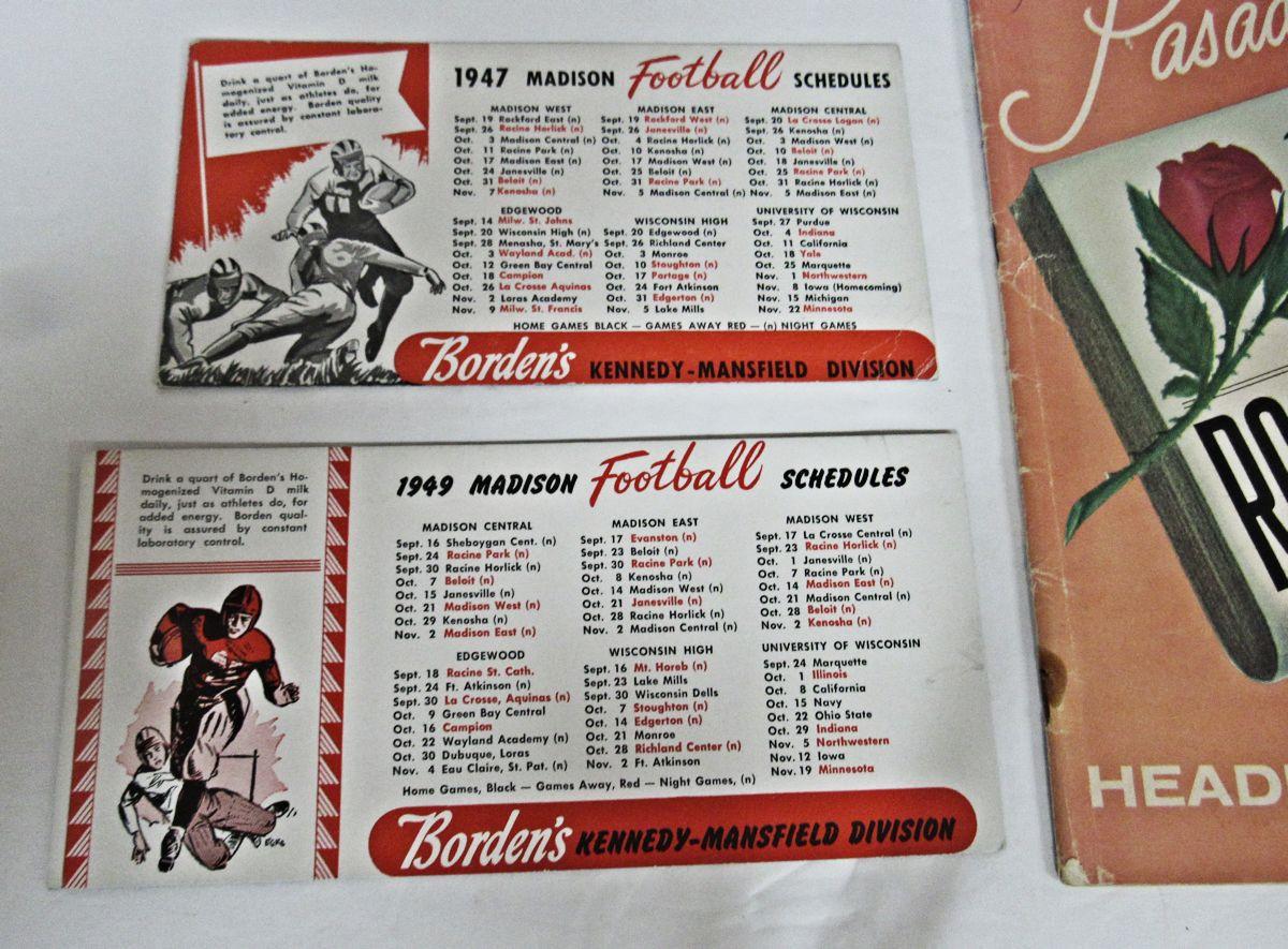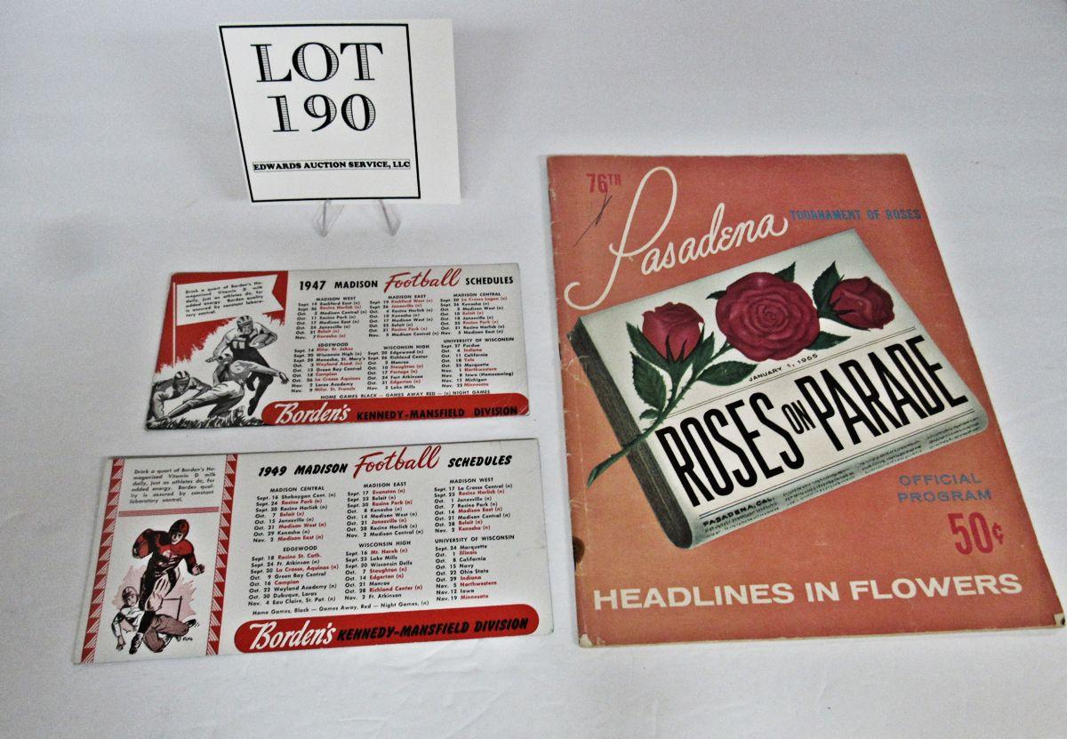 Madison Football Schedules, 1947 & 1949, and Pasadena Tournament of Roses Roses on Parade Program 1965