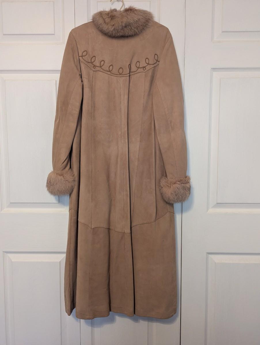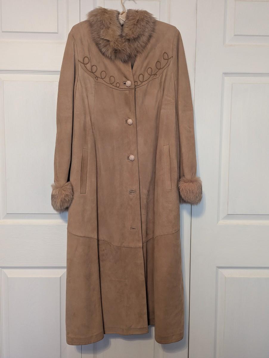 Women's Kestila Turku Finland Leather Coat With Fur Trimmed Hood & Cuffs