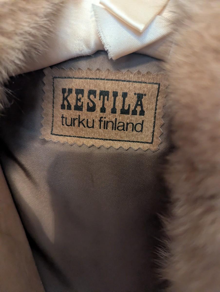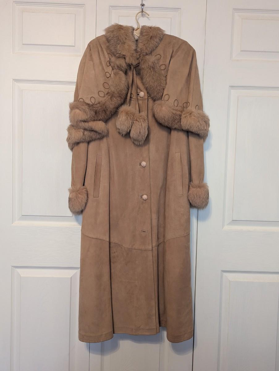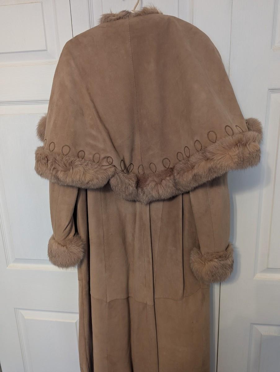 RARE WOMANS KESTILA Turku Finland Leather Coat With Fur Trimmed Hood & Cuffs
