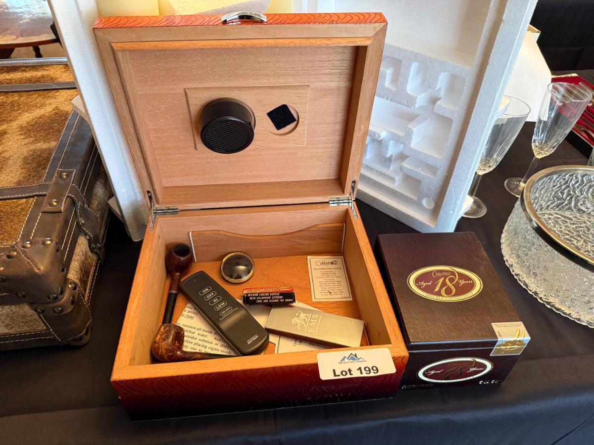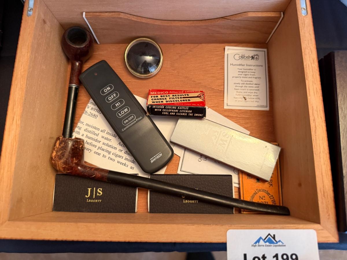 Wood Humidor box w/2 pipes, papers, matches + extra box