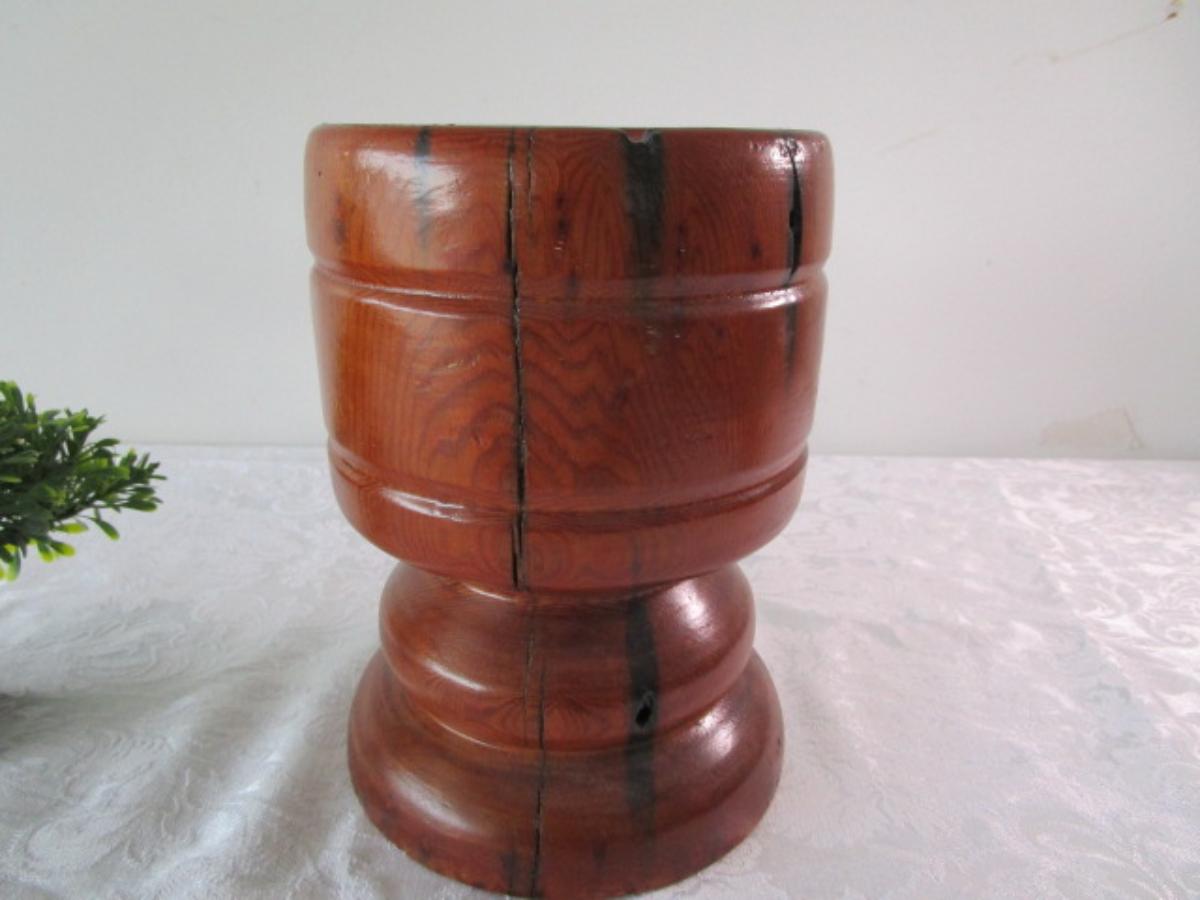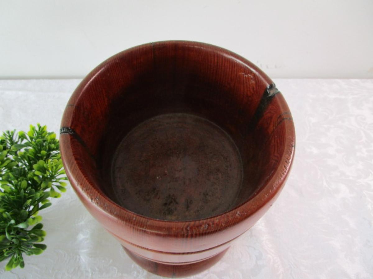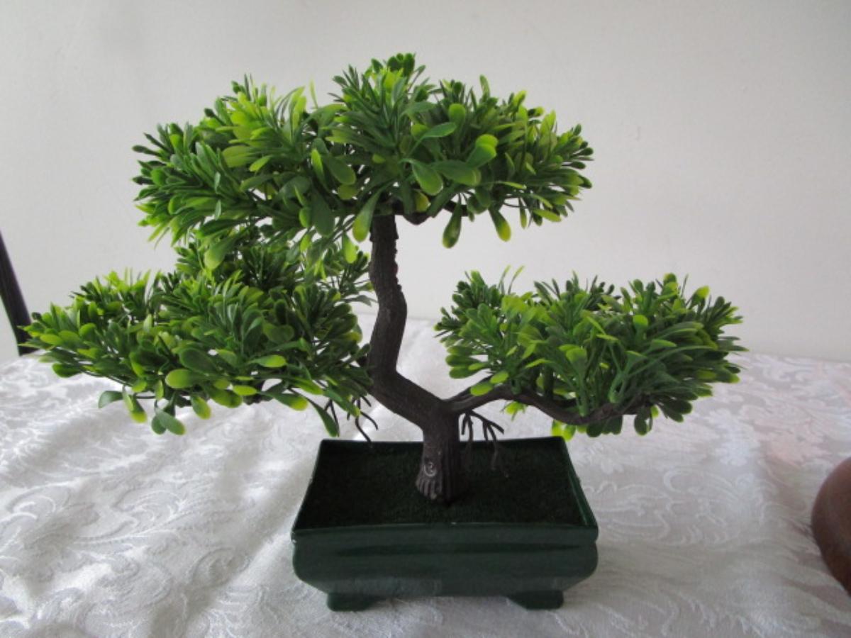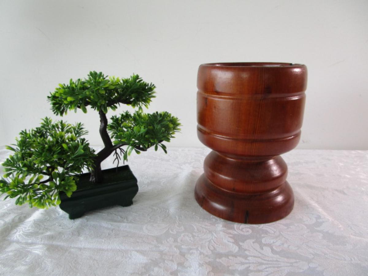 Wood planter; plastic Bonsai tree