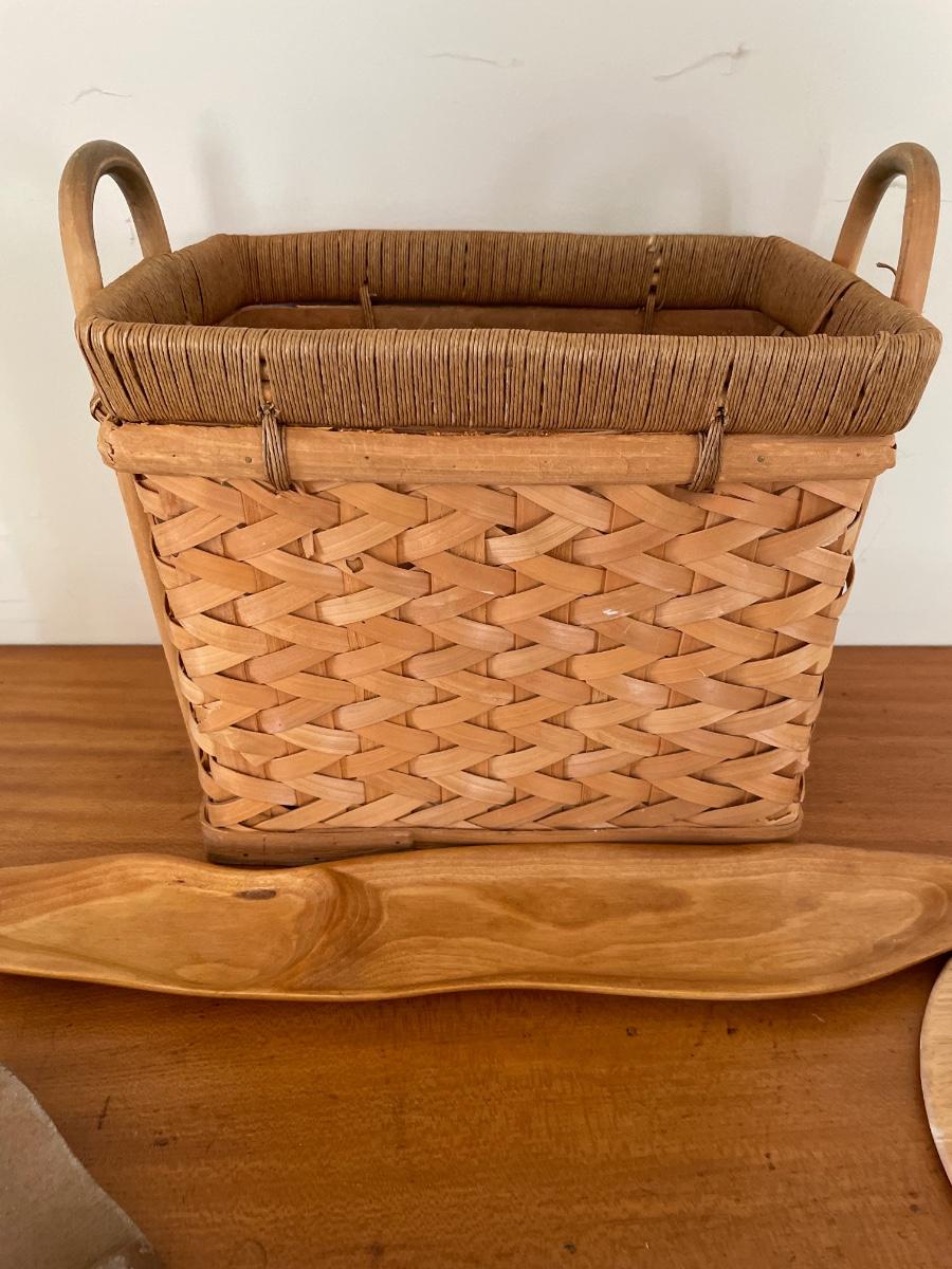 Wood shoe decor, Crate & Barrel plate, basket