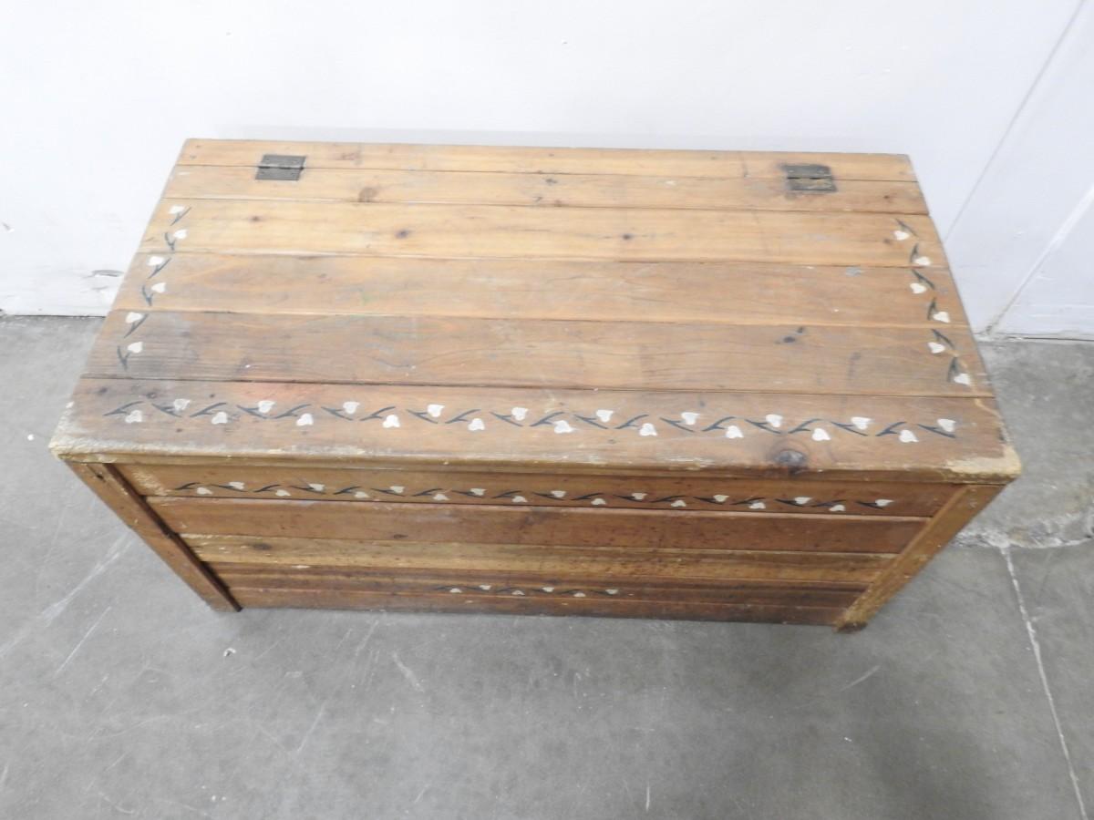Wood Trunk: 36in L 17 1/2 in tall 18 in wide, Loose Boards-Need Re-attaching