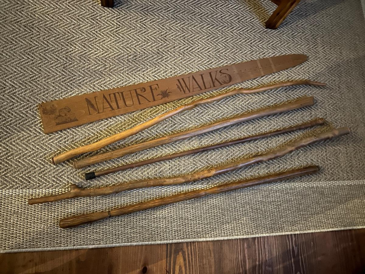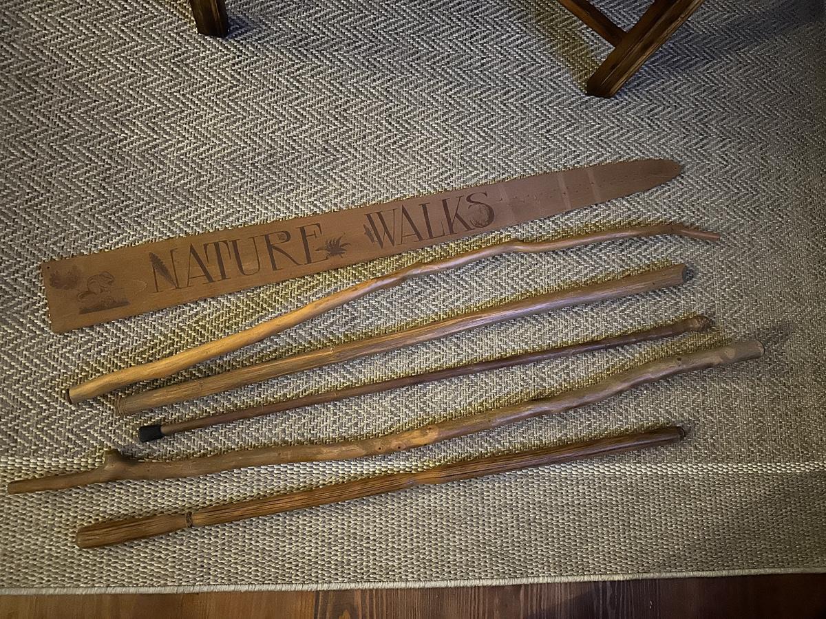 WOOD WALKING STICKS, NATURE WALK SIGN