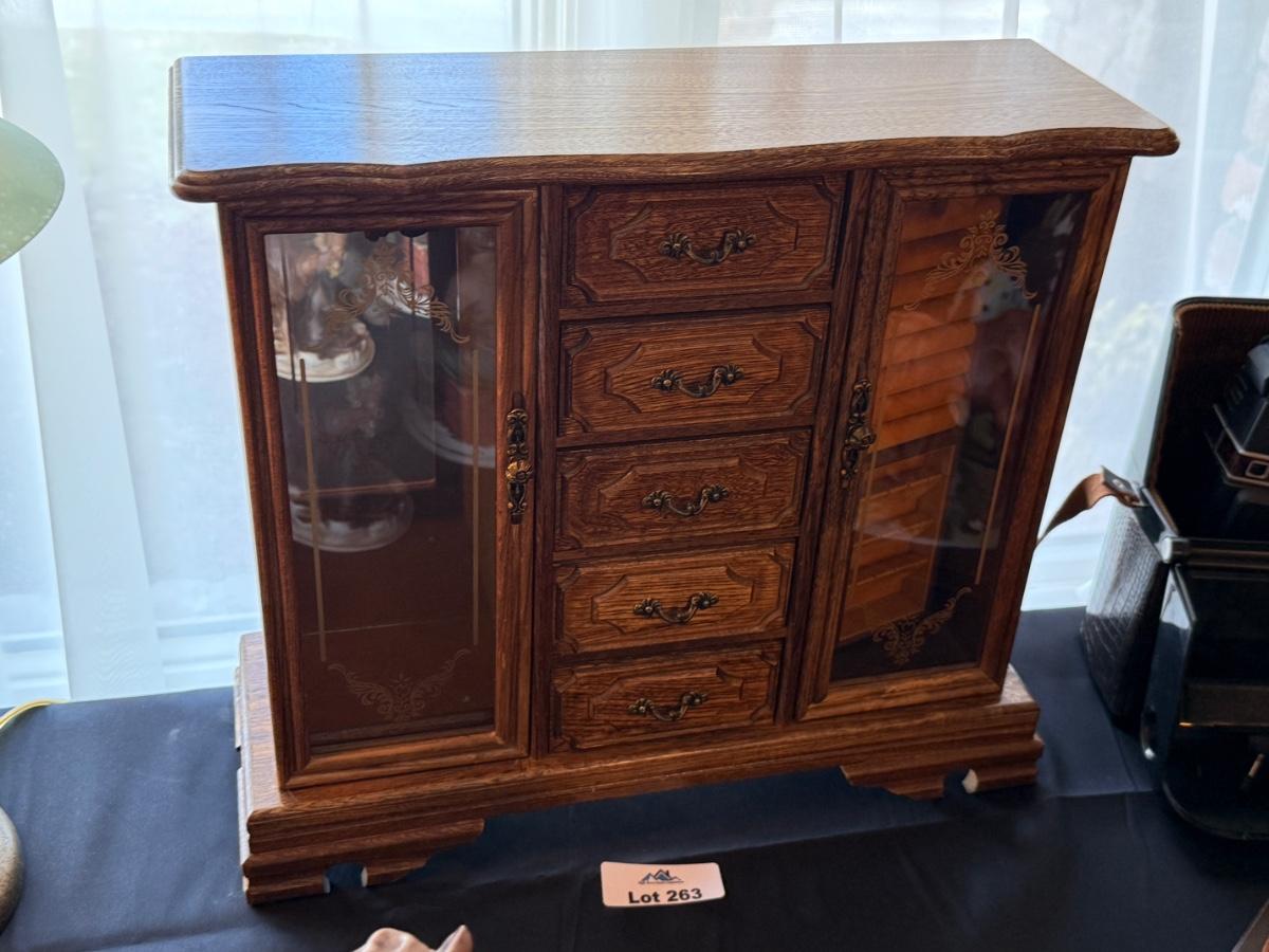 Wood wind up 5 drawer/2 door 16”t x 18”w jewelry music box