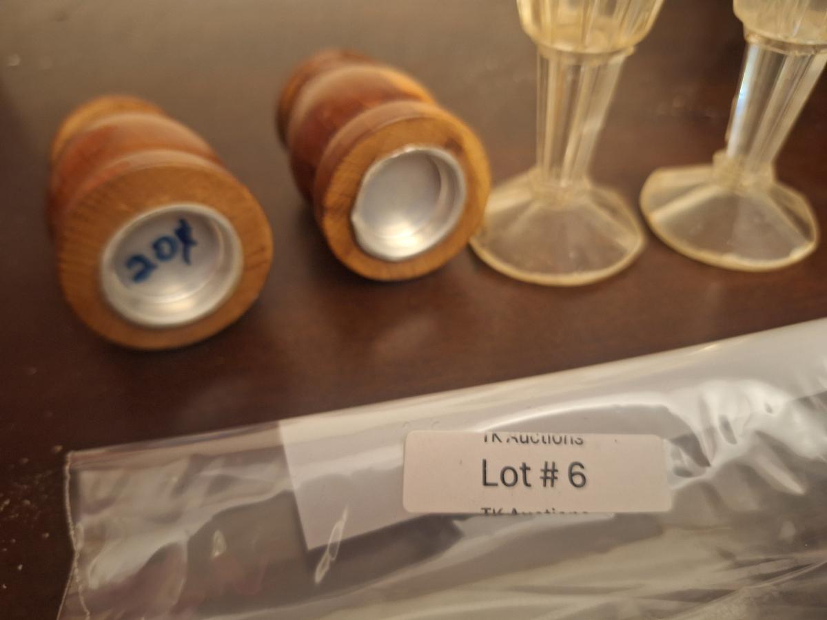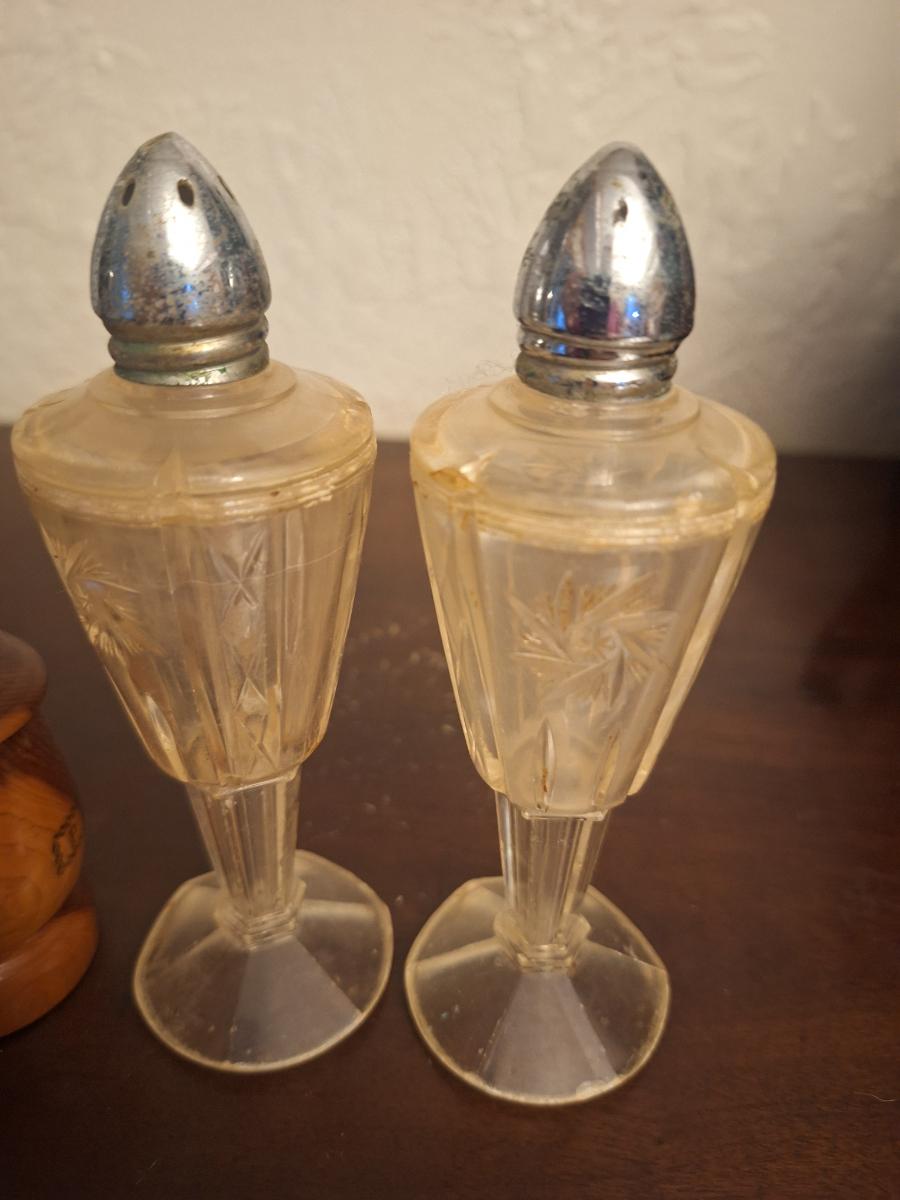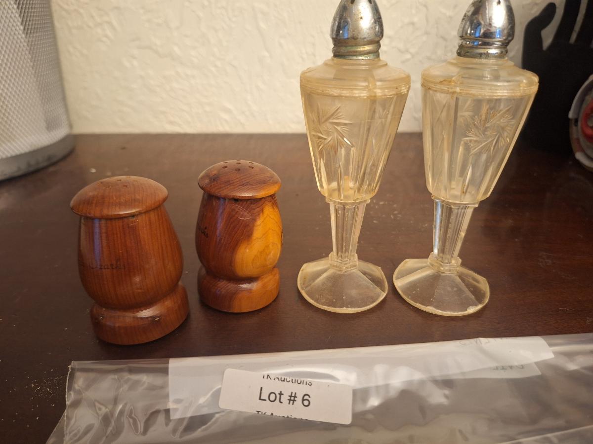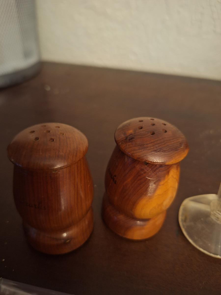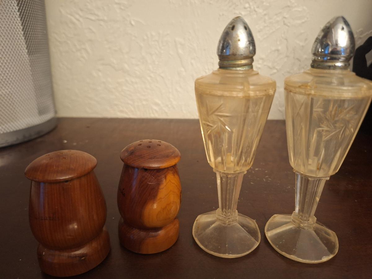 wooden and plastic salt and pepper shakers