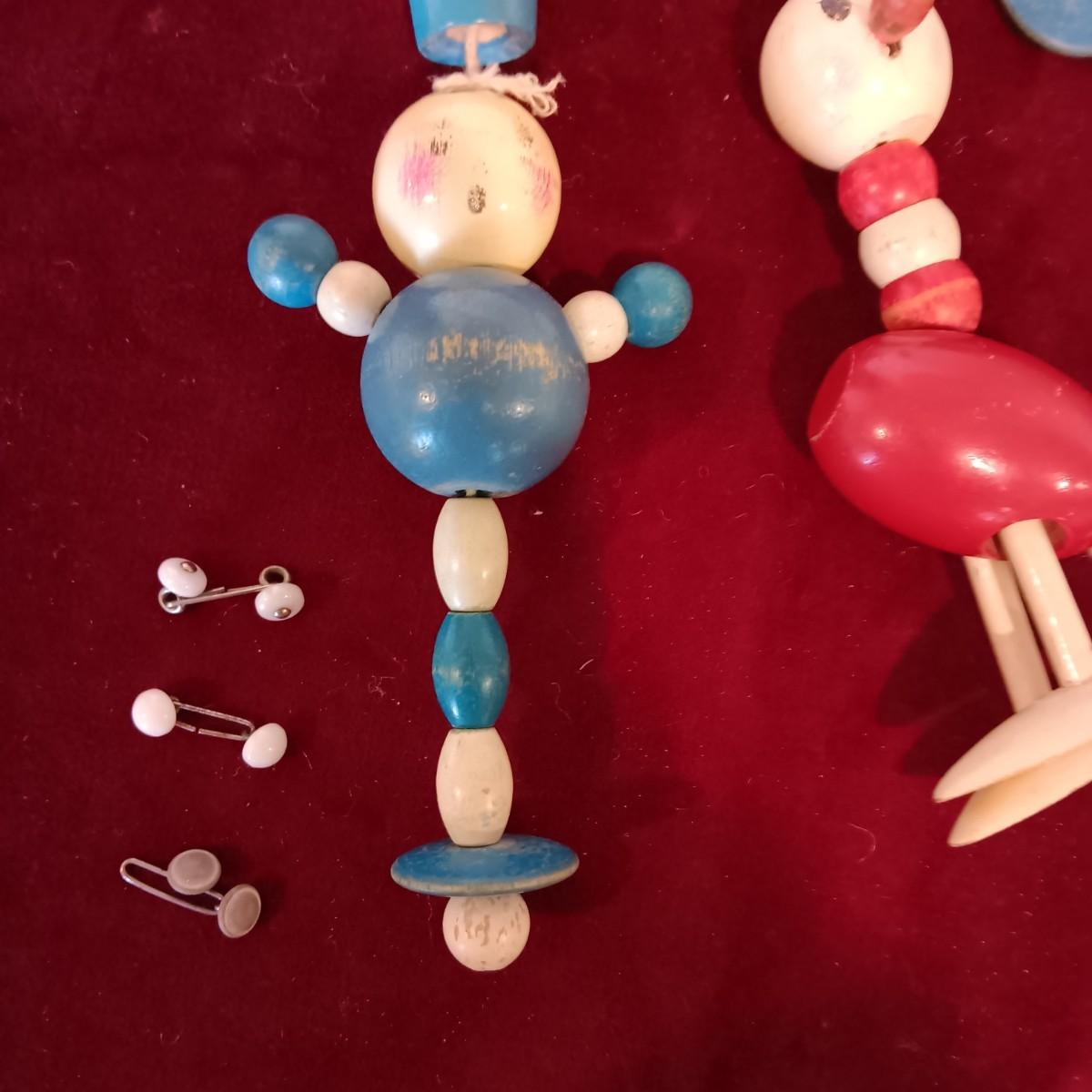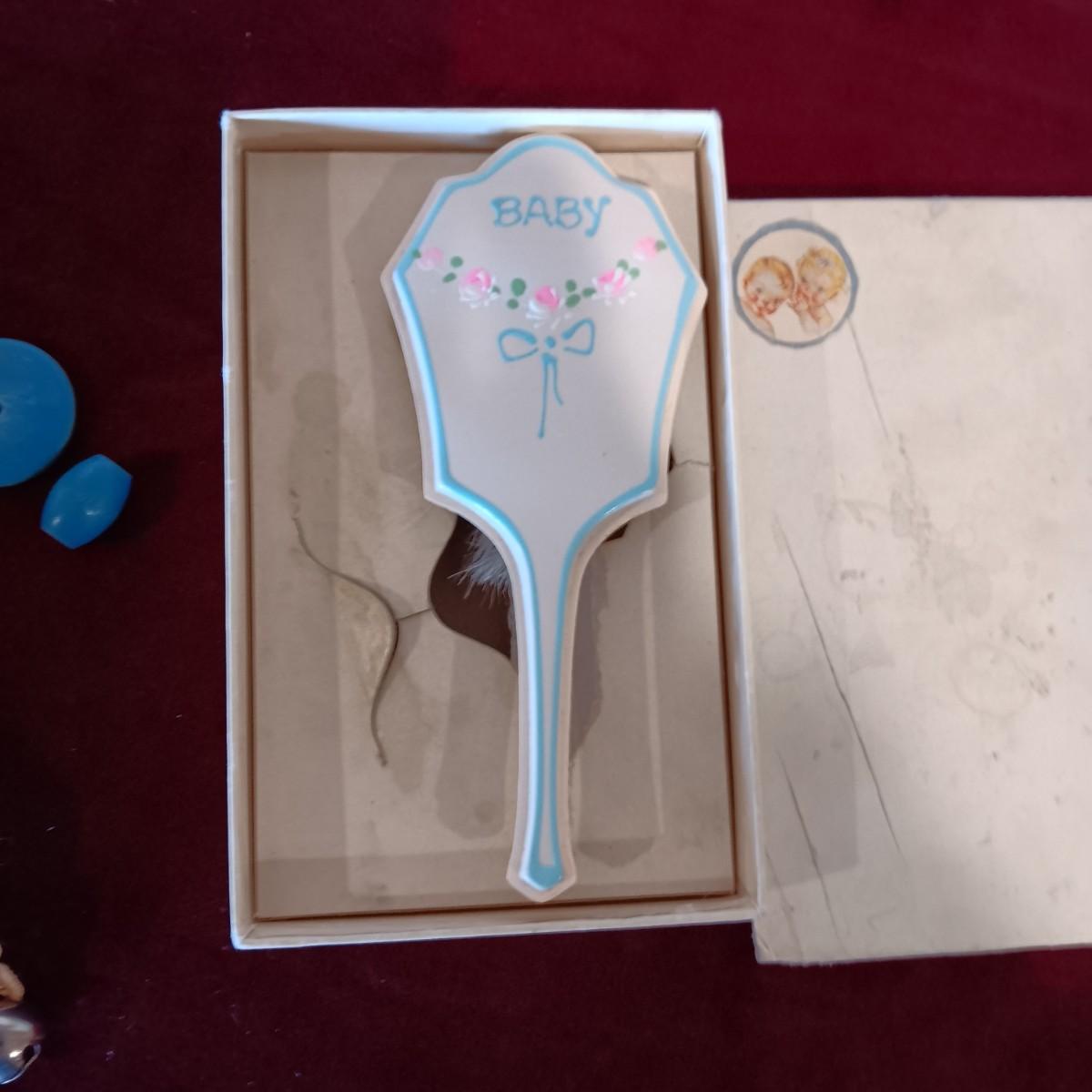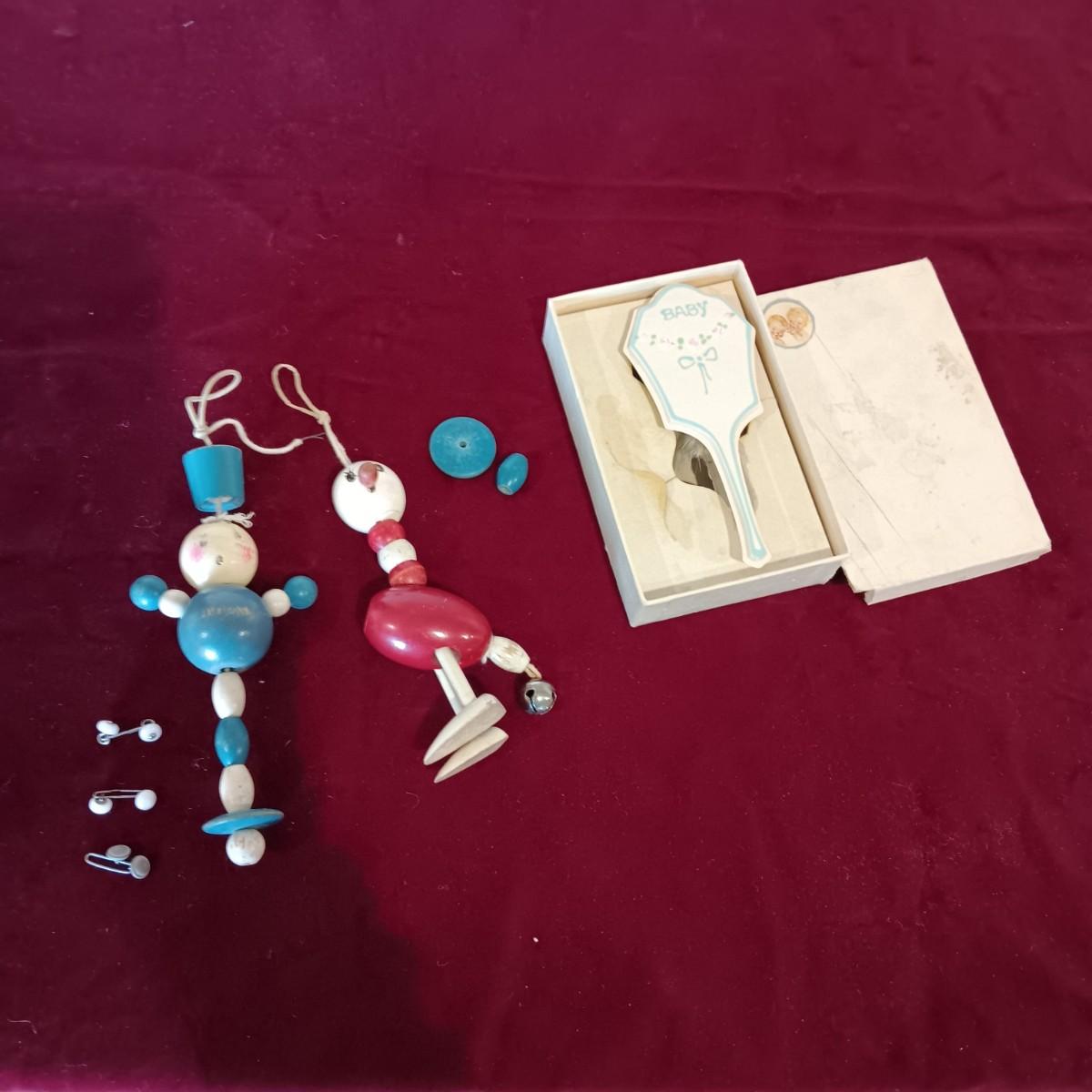 WOODEN BABY TOYS, BUTTONS AND BRUSH FROM 1940