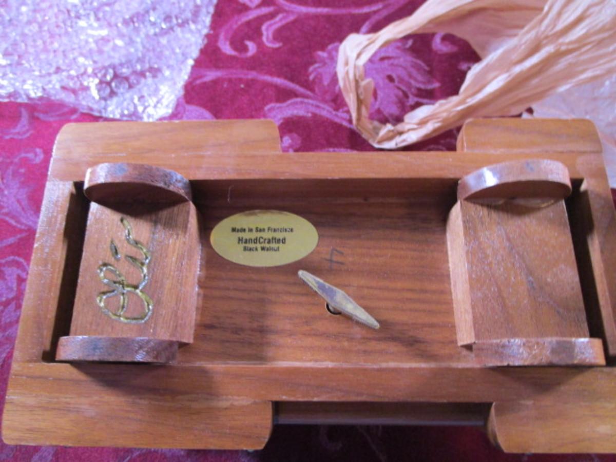 Handcrafted walnut music box plays slowly, 7-1/2" long x 6" tall x 4From Germany, 5-3/4" tall wide