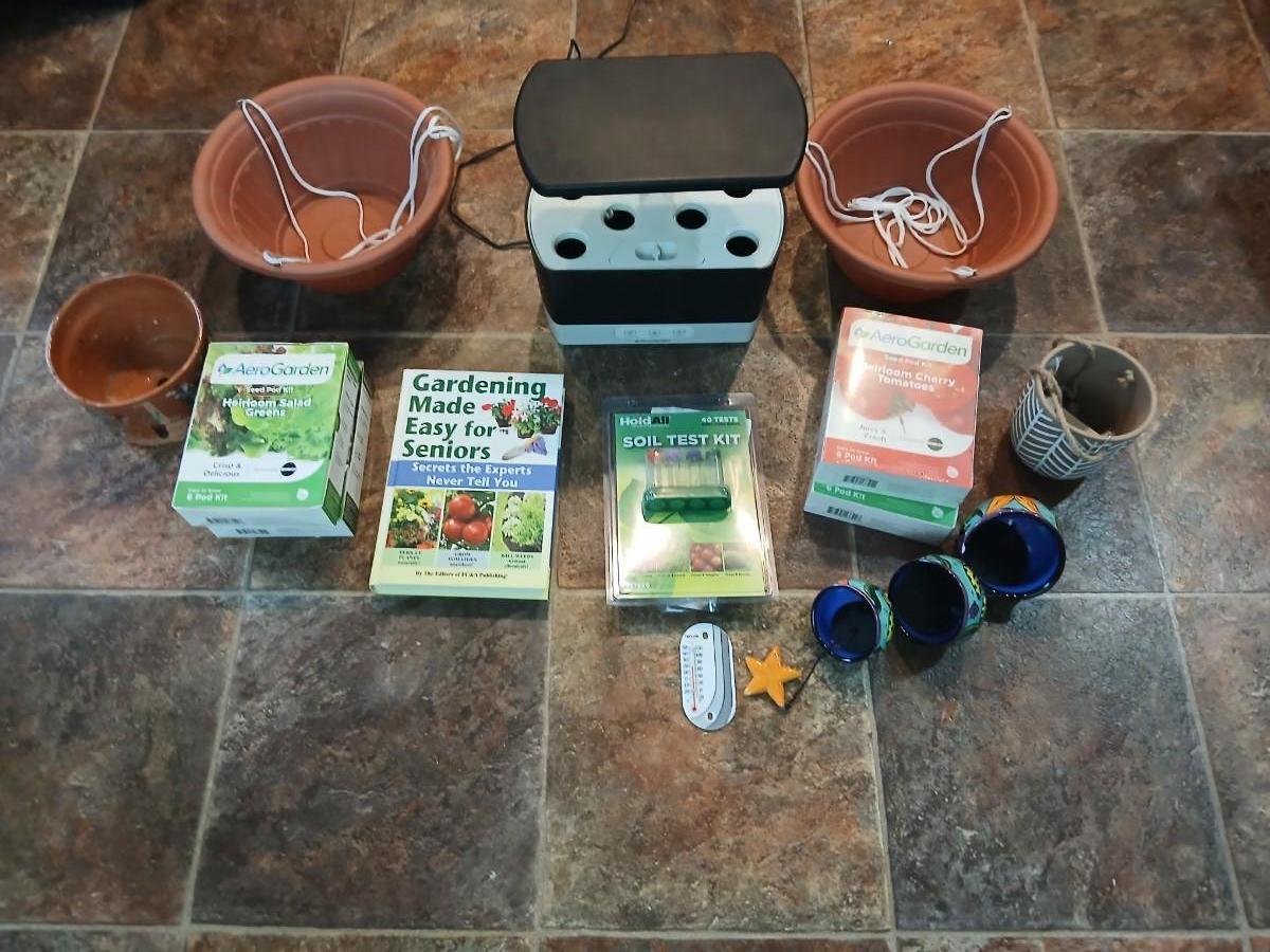 Working AeroGarden with seed boxes - and other small household / yard gardening supplies