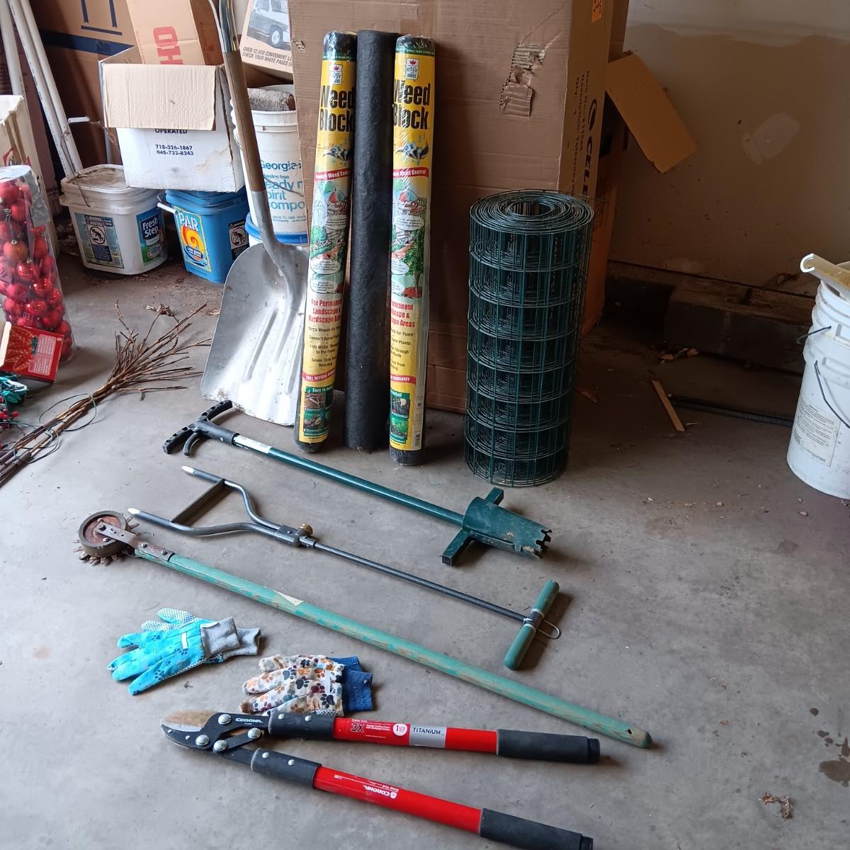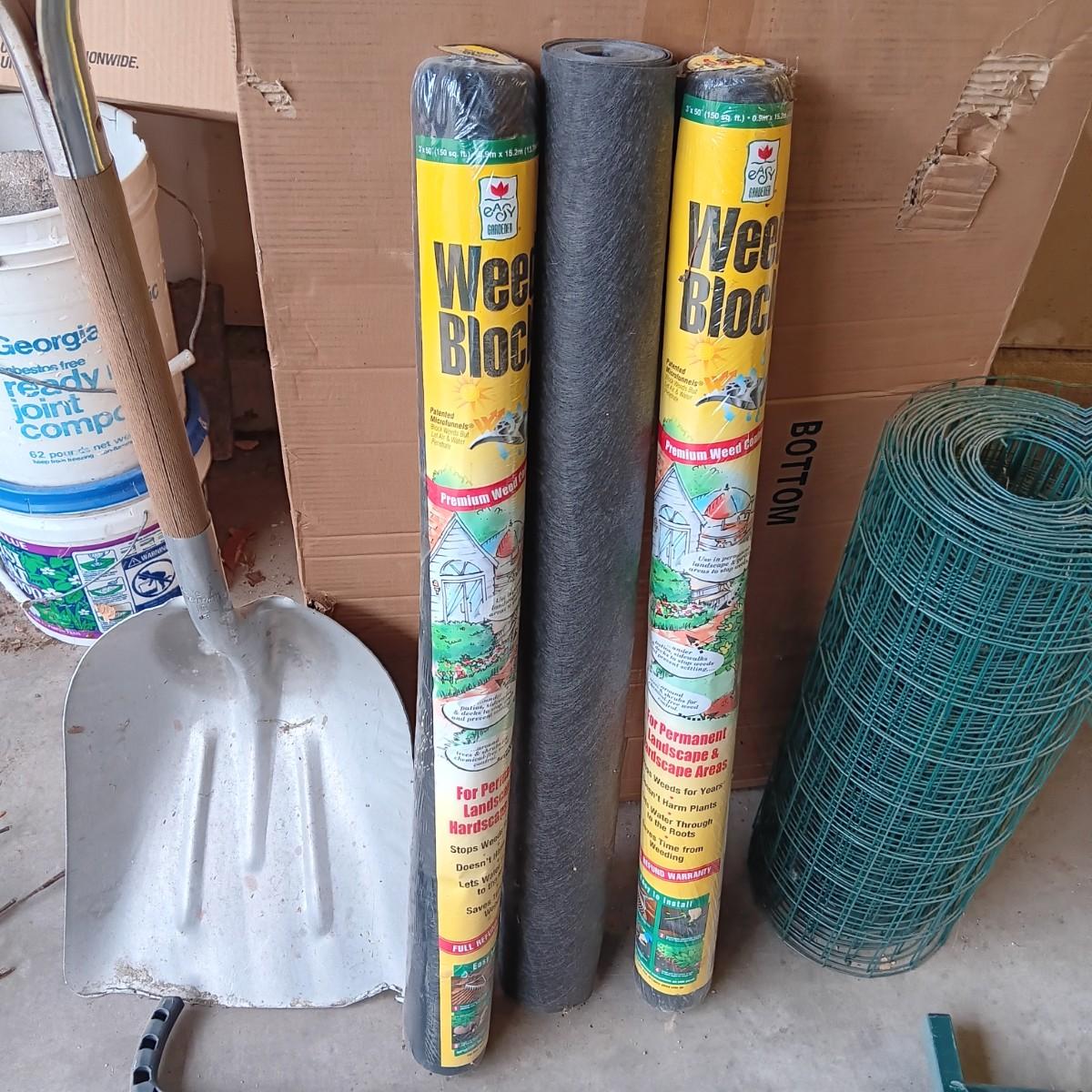 YARD TOOLS PLUS WEED BLOCK AND METAL FENCING