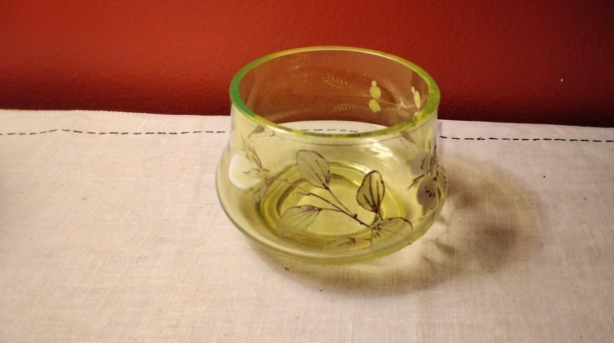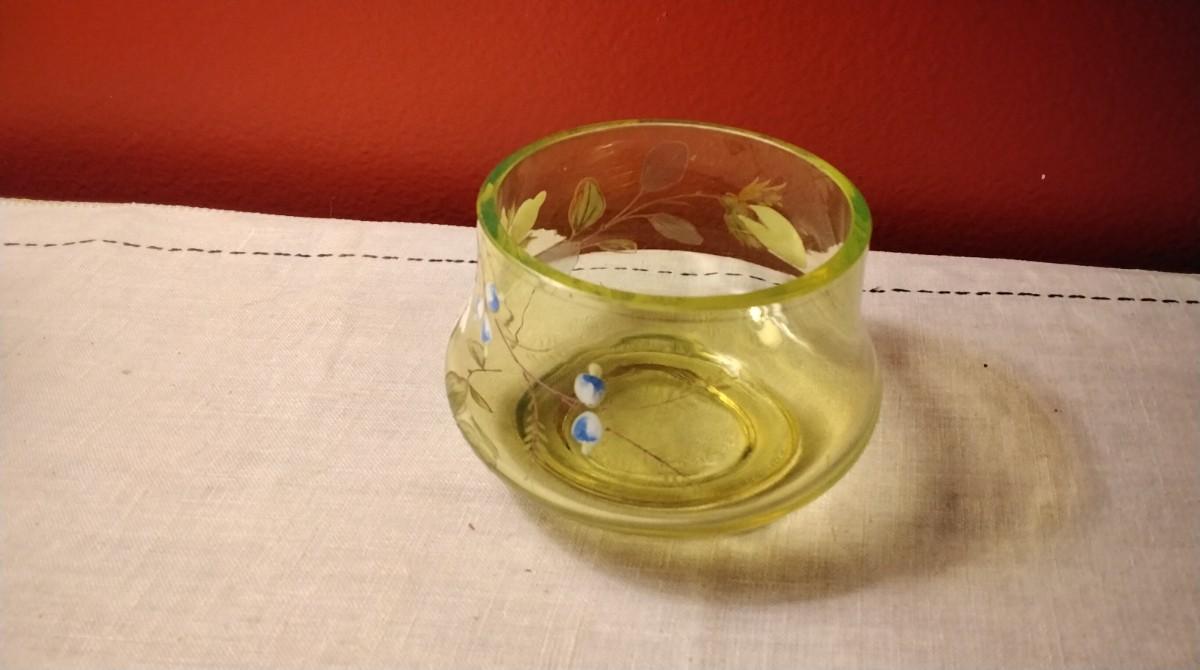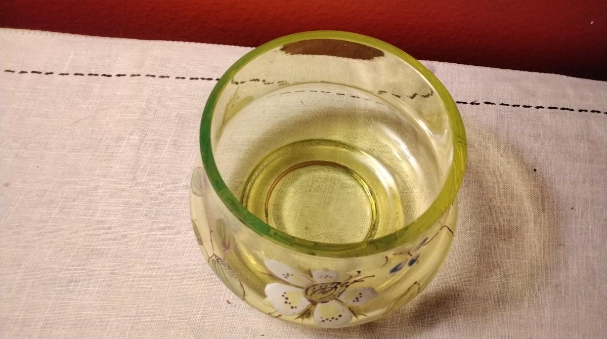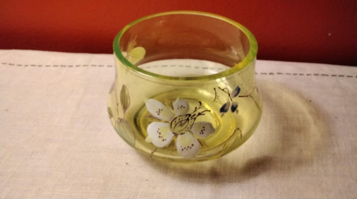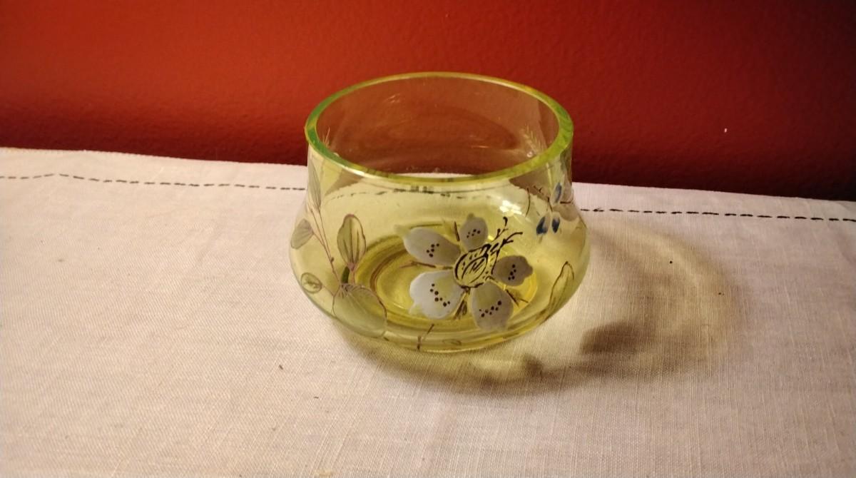 Beautiful pale yellow with intricate flowers hand painted. 4"× 3"
