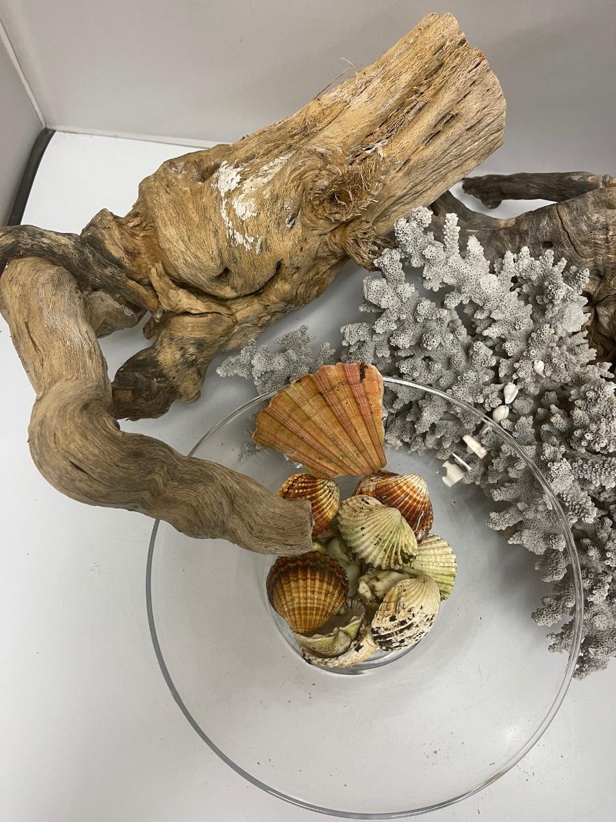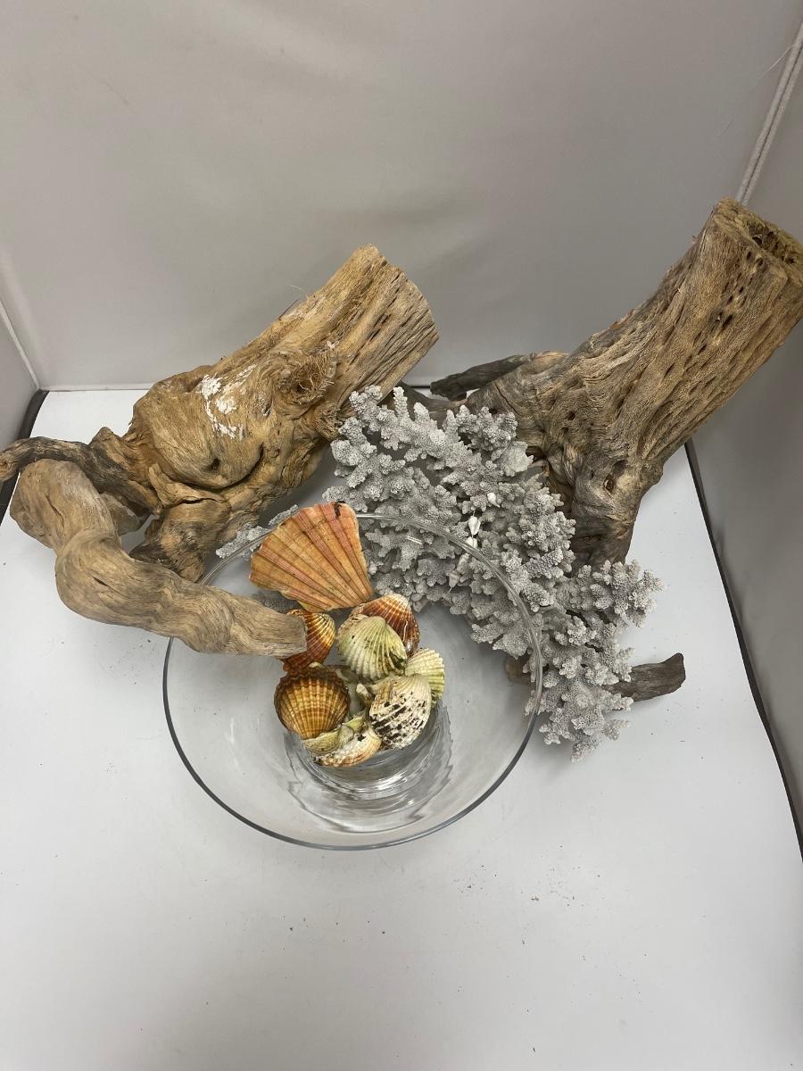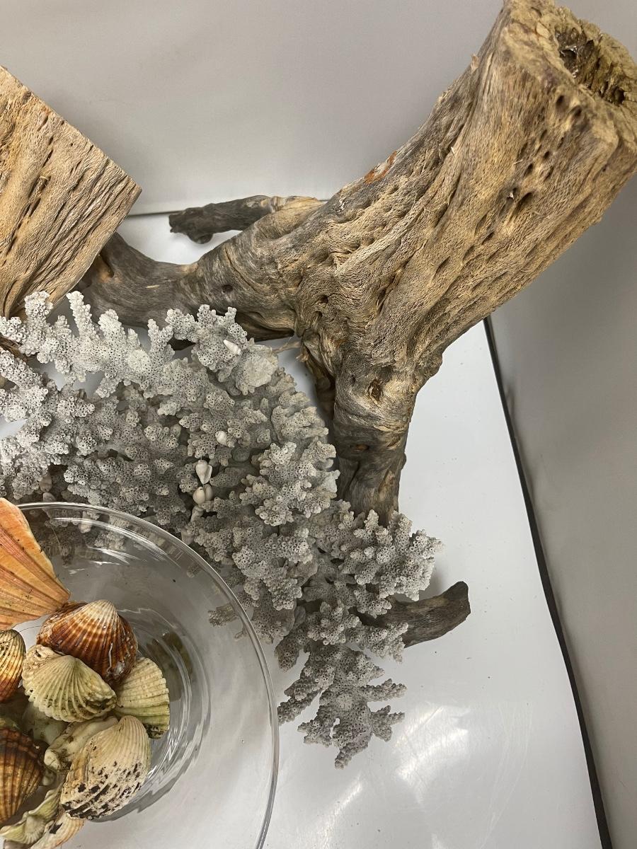 Driftwood Coral and Seashell Decor Lot. Weathered from display outside.