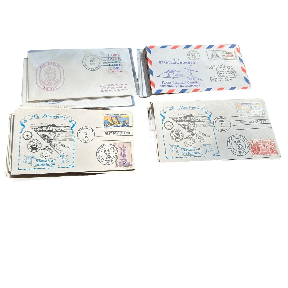Big Bag of First Day Covers (FDCs) Postmarked Commemorative Envelopes, Military, State, Etc.