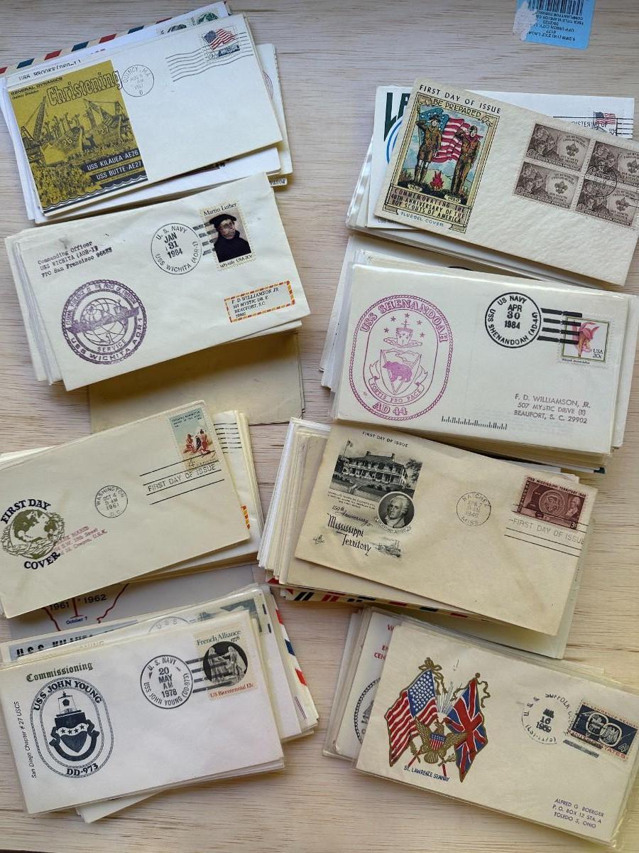 Big Bag of First Day Covers (FDCs) Postmarked Commemorative Envelopes, Military, States, Etc.