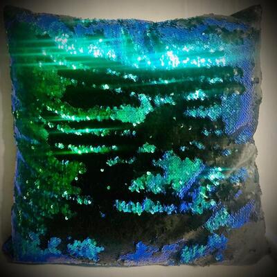 LARGE SEQUIN FLIP PILLOW. Very Clean. 485 / 530 -