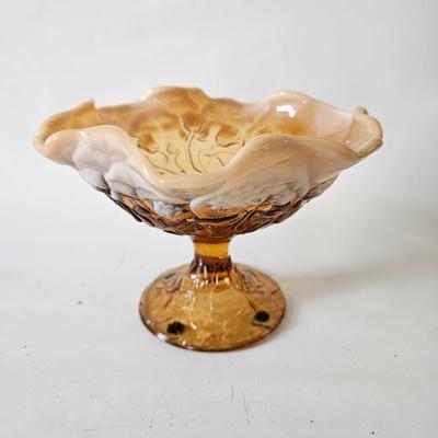 This original green iridescent Fenton jug has its Fenton sticker which is silver and says handmade in USA. This hobnail jug has the Fenton stamp on the bottom. It is iridescent, hob nail and stands a total of 5 inches tall with a ruffled top. It is a beautiful piece for any home. See photos and please note this is not uranium glass. Excellent conduction hobnail small pitcher 340 / 633 -