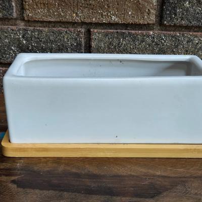 Ceramic Planter and wood Saucer in nice condition 573 / 772 sold -