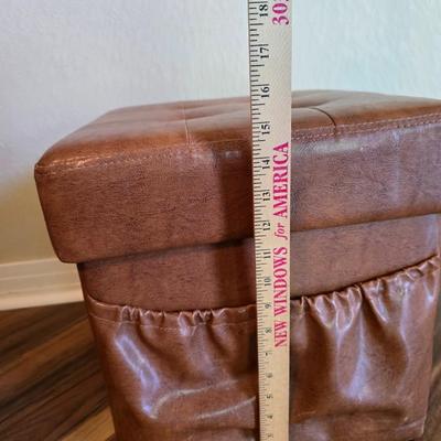 This compact and functional faux leather ottoman is perfect for small-space living. Features a classic tufted top that lifts off for hidden storage inside, plus a gathered side pocket—great for remotes, magazines, or craft tools. Warm chestnut brown with a mid-century flair. Details: Tufted faux leather exterior Lift-top storage compartment Gathered elastic side pocket Approx. Dimensions: 13" W x 13" D x 15" H Color: Warm brown/caramel tone Condition: Very good vintage condition; minor wear to edges consistent with age Ideal for use as a footrest, end table, or sewing box in retro or rustic interiors. 2352 / 4588 sold -