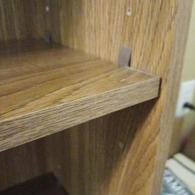 Simple and functional, this medium-sized laminate bookshelf features a woodgrain veneer finish and clean mid-century style lines. With three fixed shelves, it offers versatile storage for books, collectibles, media, or office supplies. Lightweight and compact, it's a practical choice for small spaces like bedrooms, dorms, or home offices. Approx. Dimensions: 29" H x 24" W x 9.5" D Condition: Good overall; some light wear and surface scuffs consistent with use Budget-friendly utility with a classic look! 3066 / 4588 sold -