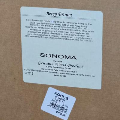 Bring elegance to your wall with this richly detailed framed art print by Betsy Brown, sold under the Sonoma life+style collection at Kohlβs. Known for her romantic interpretations of historical sites and landscapes, Brown captures the charm of a European village street in soft purples and neutral tones. The print is beautifully matted and set in a genuine wood frame with antique-bronze beaded trim. Details: Artist: Betsy Brown Title: Untitled European Village Scene (Sonoma Collection) Frame size: approx. 28" W x 32" H Printed on paper, matted and framed under glass Originally retailed for $109.99 (Kohlβs tag still attached) Made in the USA Condition: Excellent pre-owned condition. Ready to hang. Ideal for traditional, French country, or romantic dΓ©cor themes. 3329 / 4588 -