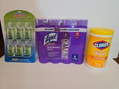 Stay stocked up with this essential hygiene lot! Great for home, office, or travel. Lot Includes: (1) 6-pack of Ultra Defense Sani+Smart Hand Sanitizer (1.69 oz bottles – sealed) (1) 4-pack of Lysol Professional Disinfectant Spray (19 oz cans – unopened shrink-wrap) (1) Clorox Disinfecting Wipes canister (78 wipes – sealed) All items are brand new and factory sealed. Perfect for cold/flu season, high-touch surfaces, or emergency preparedness. 3752 / 4588 sold -