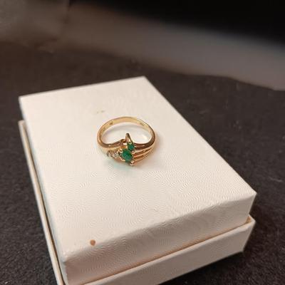• 14K GOLD RING WITH EMERALDS 2.84g SIZE 5