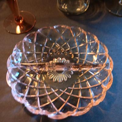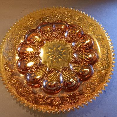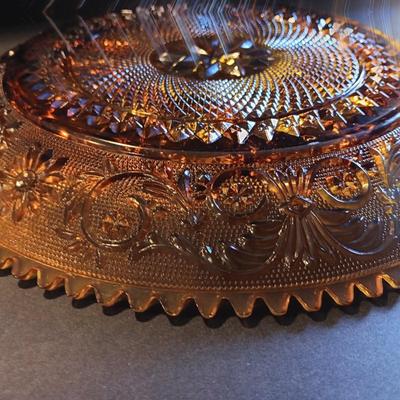 Tiara Crystal Sandwich Amber Collection 3-Section Relish Dish 12" 2263 / 3002 sold