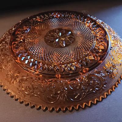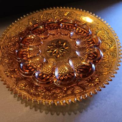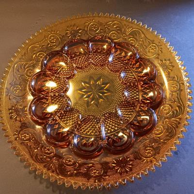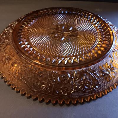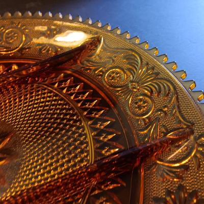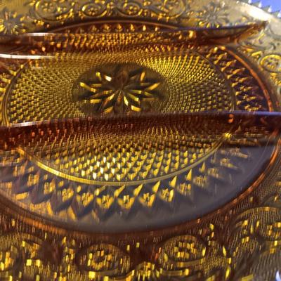 Tiara Crystal Sandwich Amber Collection 3-Section Relish Dish 12" 2258 / 3002 sold -