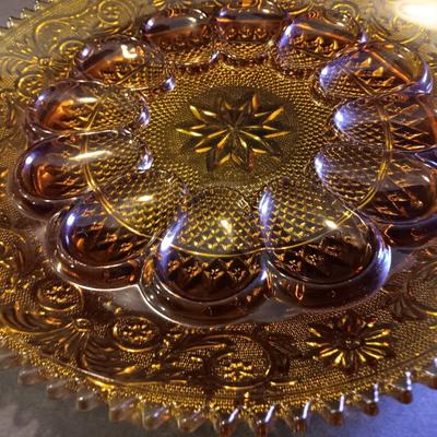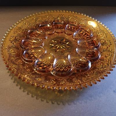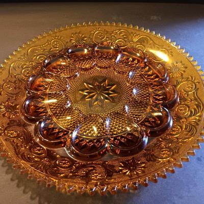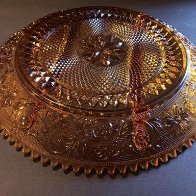 Tiara Crystal Sandwich Amber Collection 3-Section Relish Dish 12" 2257 / 3002 sold -