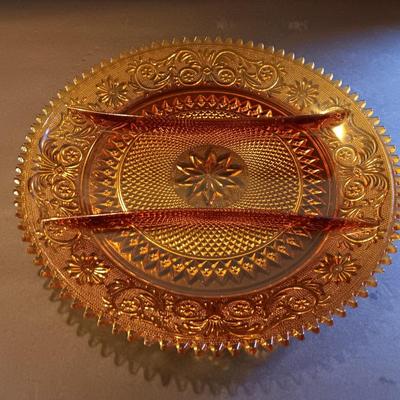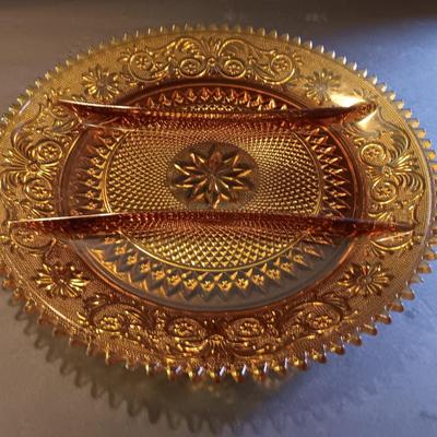 Tiara Crystal Sandwich Amber Collection 3-Section Relish Dish 12" 2260 / 3002 sold -