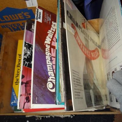 VINTAGE WOODEN BOX FULL OF LP RECORDS 325 / 617 -