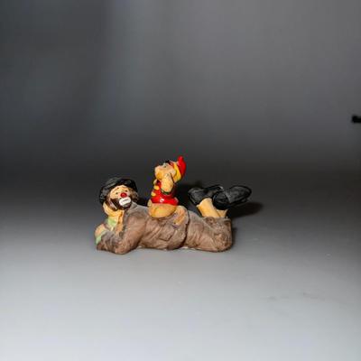 Presenting an Emmett Kelly Jr. miniature clown figurine standing with a playful monkey—part of the beloved Emmett Kelly Jr. collection. This charming piece captures the whimsical spirit of the iconic hobo clown and his mischievous companion, showcasing detailed craftsmanship and vibrant colors. Please note that this figurine is sold without its original box. It's a delightful addition for collectors or a perfect accent for any home decor. Don’t miss out on the chance to own this unique piece! 17 / 878 sold -