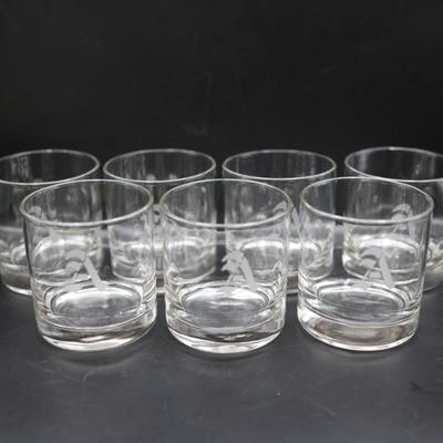 Set of 7 "A" monogram glasses. 639 / 859 sold -