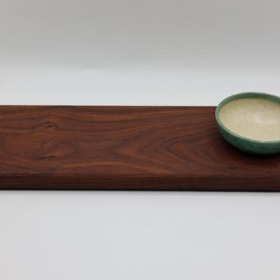 Pottery dish is signed. Tray is hand painted. 5" x 14.5" x 1" 1873 / 2474 sold -