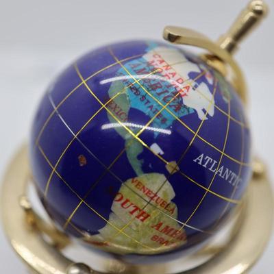 6" table top gemstone world globe with gold stand. 839 / 1355 sold -