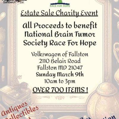 FUNDRAISER ESTATE SALE for National Brain Tumor Society and Race for Hope