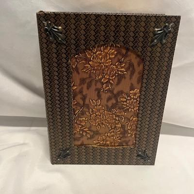 This table lamp is metal with a dark cream fabric shade and a metal lid. The accompanying vase appears to be bamboo and measures 9â€D x 16.5â€H. The lamp has an on off switch and measures 9â€D x 24â€H. It powered on when plugged in. Lamp shade has rips inside, see pictures. Shipping Available 1337 / 1429 sold -