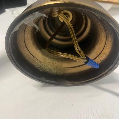 This quartz clock has a resin base with metal body. The miniature broom has a wooden top. Also includes a heavy resin table lamp with on off switch. Lamp powered on when plugged in and measures 11†x 7†x 32â€H not including shade. Clock was not tested as it has no battery. Local Pickup Only 1391 / 1429 -