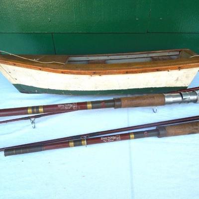 National Vulcanized Fibre trunk 31" x 17" x 13" with metal lock (no key); Trunk has a wooden shelf insert and trunk has an Indian head decal. Stanleys Grill baseball uniform size 36 with moth holes (especially pants); two Louisville slugger bats (one is little league size); a canvas Drybak child's fishing vest; a Cub Scout cap; 3 cotton vintage baseball caps; a "S" green cotton wool blend baseball cap; a pair of green and white nylon shin covers; a vintage protective jock strap cup and a metal "Sylva" license plate. 2424 / 2771 sold -