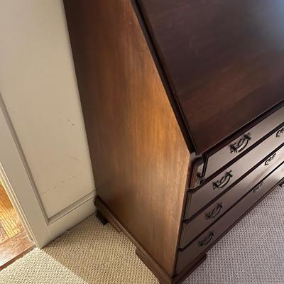 Lot includes a Four dovetailed drawer Secretary made by Craftique. Secretary has eight visible drawers and two hidden drawers. Secretary measures 21†x 38†x 43.5â€H when closed and 36†x 38†x 43.5 when open. Secretary also has a tape dispenser that is attached. See images for examples of scratches and nicks. Local pickup only. Winning bidder must bring assistance to help move and load this item due to its weight and/or size. 2484 / 5261 sold -